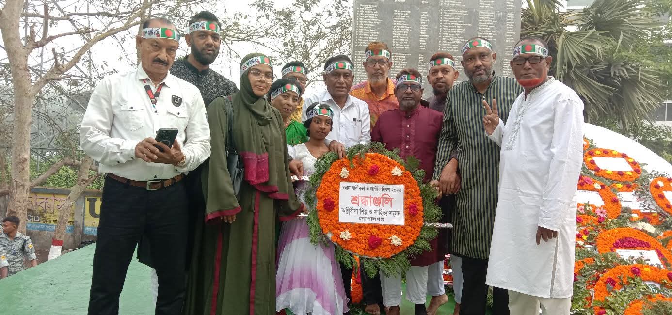 ২৬ মার্চ ভোরে গোপালগঞ্জ শহরের স্বাধীনতা বেদীতে সংগঠনটির সদস্যবৃন্দ একত্রিত হয়ে বীর শহীদদের স্মৃতির প্রতি সম্মান জানিয়ে ফুল দিয়ে শ্রদ্ধা নিবেদন করেন। এ সময় তারা কিছুক্ষণ নীরবতা পালন করেন এবং মহান মুক্তিযুদ্ধে আত্মোৎসর্গকারী শহীদদের আত্মার মাগফিরাত কামনা করেন।