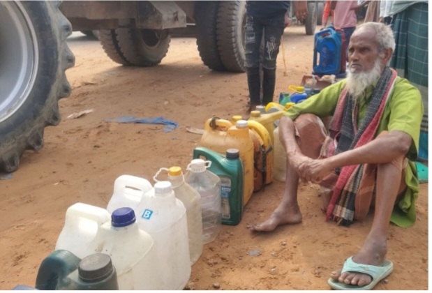 রাজশাহীর তানোরে জ্বালানি তেলের জন্য পাত্র হতে পাম্পে অপেক্ষার দীর্ঘ লাইন কৃষকদের। ৪ ঘন্টা থেকে ৫ ঘন্টা অপেক্ষার পরও তেল না পেয়ে হতাশ হয়ে ফিরে যাচ্ছেন শত শত কৃষক। তেল দেয়ার খবরে পাম্পের সামনে আগে থেকেই (ভোর) থেকে পাত্র হাতে যারা অপেক্ষা করছেন তারাও চাহিদা মত তেল পাচ্ছেন না। ৩শ’ টাকা থেকে ৫শ’ টাকার তেল নিয়ে ফিরে যেতে হচ্ছে কৃষকদের। চাহিদামত তেল না পাওয়া কৃষকরা