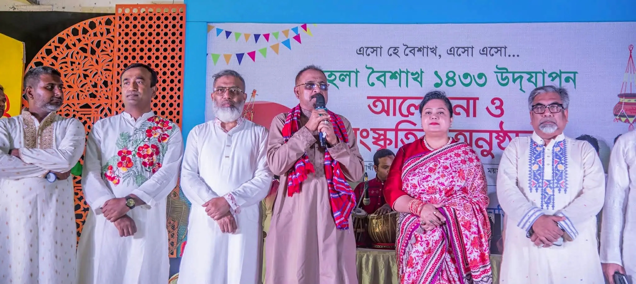 শুভেচ্ছা বক্তব্যে ময়মনসিংহ বিভাগীয় কমিশনার বলেন, বাংলাদেশ বিভিন্ন জাতিগোষ্ঠীর দেশ। বিভেদ ভুলে, সবার আগে বাংলাদেশকে সামনে রেখে, পালাগান যাত্রাগান, বৈশাখী মেলা, হালখাতা, দেশিয় সংস্কৃতির পরিচয়কে সামনে রেখেই এগিয়ে যেতে হবে। দিনশেষে আমরা সবাই বাংলাদেশি, সবাই বাংলাদেশের জন্যই কাজ করি। সম্মিলিতভাবেই দেশকে এগিয়ে নেব, সবার এই অঙ্গীকারই হোক।