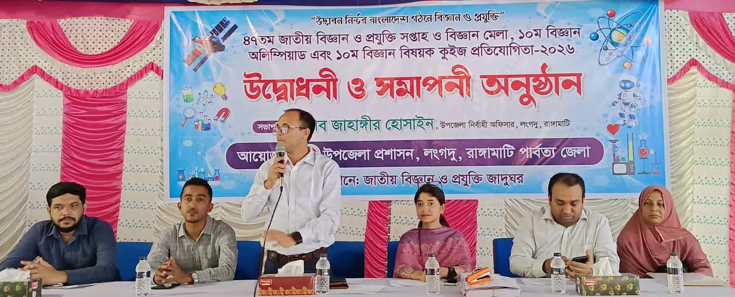 "উদ্ভাবন নির্ভর বাংলাদেশ গঠনে বিজ্ঞান ও প্রযুক্তি"এই প্রতিপাদ্যে লংগদুতে ৪৭তম জাতীয় বিজ্ঞান ও প্রযুক্তি সপ্তাহ ও বিজ্ঞান মেলা, ১০ম বিজ্ঞান অলিম্পিয়াড এবং ১০ম বিজ্ঞান বিষায়ক কুইজ প্রতিযোগীতা- ২০২৬ এর উদ্বোধনী ও সমাপনী অনুষ্ঠিত হয়েছে।