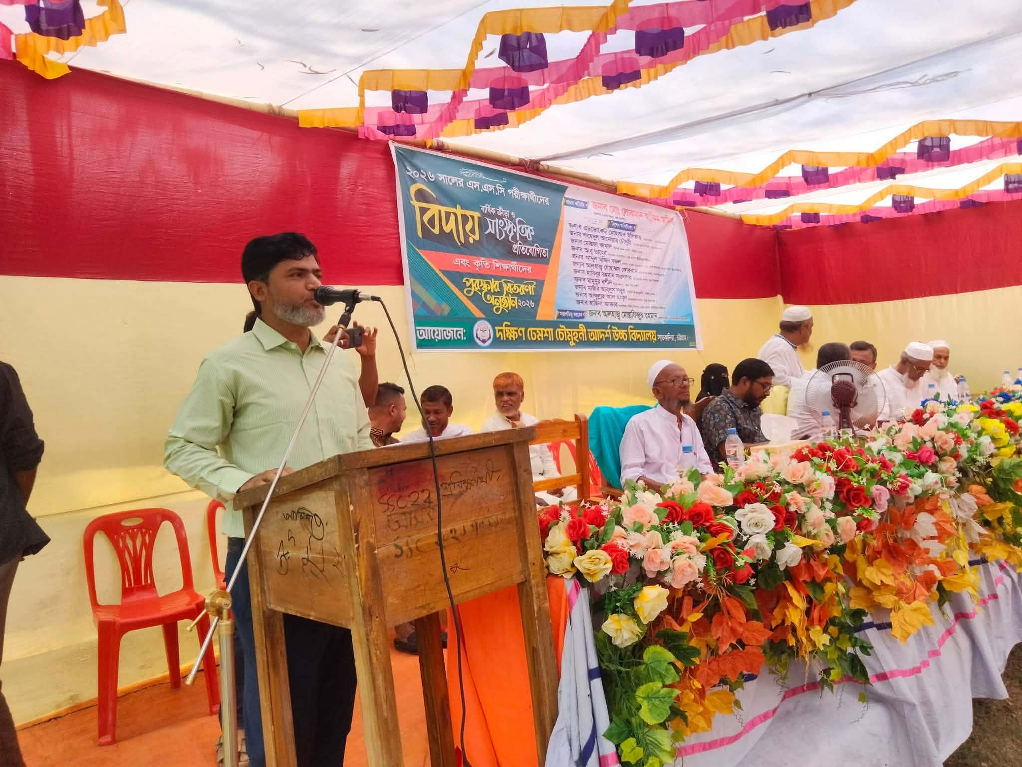 সাবেক ভারপ্রাপ্ত চেয়ারম্যান আব্দুল মজিদ বজল, বিদ্যালয়ের প্রতিষ্ঠাতা সদস্য মোহাম্মদ ফোরকান, সভায় বক্তারা বলেন তোমরা আজ যারা এই প্রতিষ্ঠান থেকে বিদায় নিচ্ছ তোমরা শুধু একটি সার্টিফিকেট হাতে নিয়ে যাচ্ছেন না তোমরা নিয়ে যাচ্ছ এই বিদ্যালয়ে দীর্ঘদিনের লালিত আদর্শ ও সংস্কৃতি । সামনে তোমাদের এসএসসি পরীক্ষা এটি তোমাদের জীবনের প্রথম বড় চ্যালেঞ্জ । কিন্তু মনে রেখো এটি শেষ নয় এটি সাফল্যের সিঁড়ির একটি ধাপ মাত্র । অনুষ্ঠানে অন্যান্যদের মধ্যে বক্তব্য রাখেন