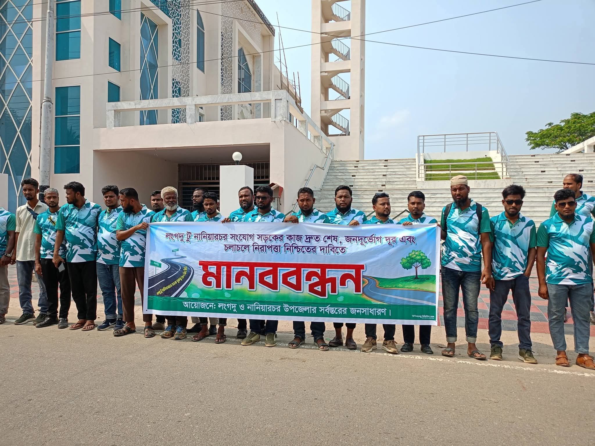 রাঙ্গামাটির লংগদু-নানিয়ারচর সংযোগ সড়কের কাজ দ্রুত বাস্তবায়ন, জন দুর্ভোগ দূর ও চলাচলে নিরাপত্তা নিশ্চিত করার দাবীতে মানববন্ধন কর্মসূচি পালন করেছে লংগদু ও নানিয়ারচর উপজেলার সর্বস্তরের জনতা।