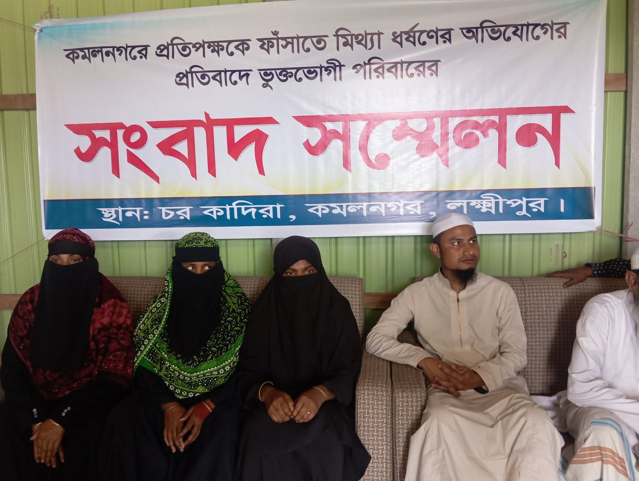 সংবাদ সম্মেলনে লিখিত বক্তব্যে ভুক্তভোগীরা জানান, গত শুক্রবার তুচ্ছ ঘটনাকে কেন্দ্র করে পূর্ব শত্রুতার জের ধরে নূপুর বেগম নামের এক নারী কমলনগর থানায় একটি উদ্দেশ্যপ্রণোদিত অভিযোগ দায়ের করেন। এতে রফিক উল্লাহর ছেলে মো. খলিল (৪৫), মো. দিদার ও বাবুলের ছেলে রাজুসহ তিনজনকে আসামি করা হয়েছে।