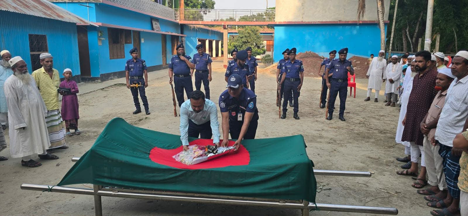 ভাঙ্গুড়া সহকারী কমিশনার (ভূমি) ও নির্বাহী ম্যাজিস্ট্রেট মিজানুর রহমান রাষ্ট্রের পক্ষে সালাম গ্রহণ করেন। এ সময় জাতীয় পতাকায় আচ্ছাদিত মরদেহে পুষ্পার্ঘ্য অর্পণ করা হয়।