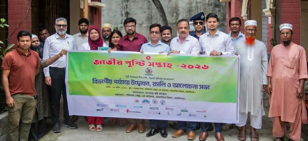 “পুষ্টি বৈষম্যের দিন শেষ, গড়বো স্বনির্ভর বাংলাদেশ” এই প্রতিপাদ্যকে সামনে রেখে ময়মনসিংহে জাতীয় পুষ্টি সপ্তাহ-২০২৬ উপলক্ষে বিভাগীয় পর্যায়ে উদ্বোধন, বর্ণাঢ্য র্যালি ও আলোচনা সভা অনুষ্ঠিত হয়েছে।