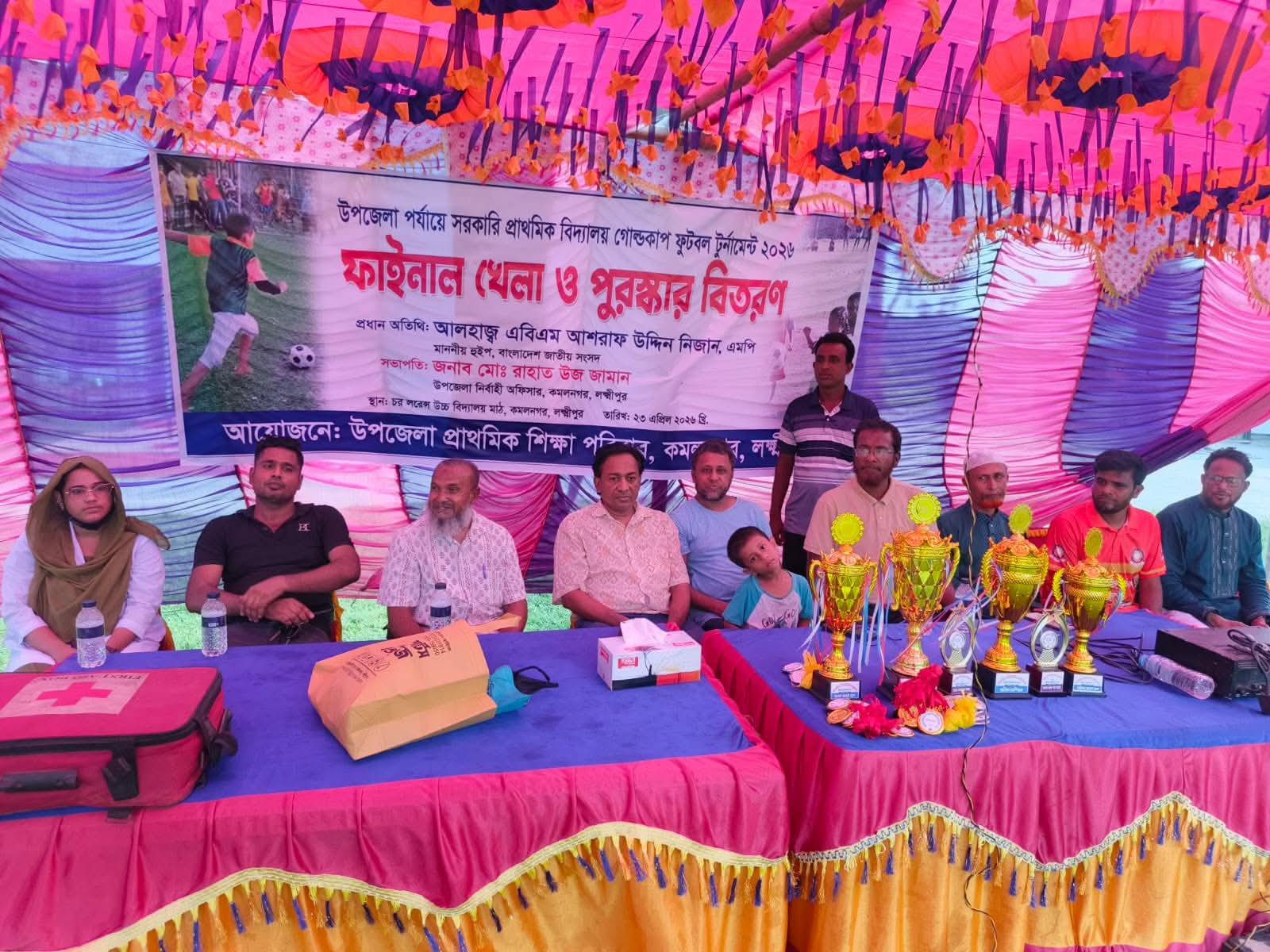 লক্ষ্মীপুরের কমলনগর উপজেলায় উৎসবমুখর পরিবেশে অনুষ্ঠিত হয়েছে সরকারি প্রাথমিক বিদ্যালয় গোল্ডকাপ ফুটবল টুর্নামেন্ট-২০২৬-এর ফাইনাল খেলা ও পুরস্কার বিতরণী অনুষ্ঠান।