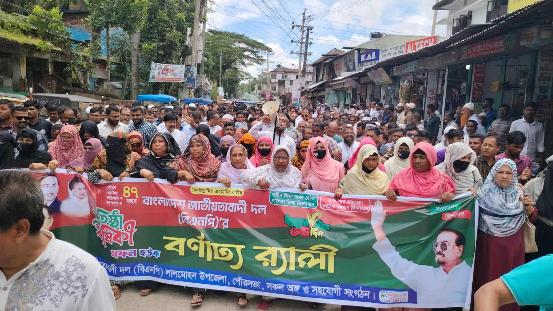 বাংলাদেশ জাতীয়তাবাদী দল (বিএনপি)-এর ৪৭তম প্রতিষ্ঠাবার্ষিকী উপলক্ষে ঘোষিত তিন দিনের কর্মসূচির শেষ দিনে ভোলার লালমোহনে বর্ণাঢ্য র্যালি ও আলোচনা সভা অনুষ্ঠিত হয়েছে।
