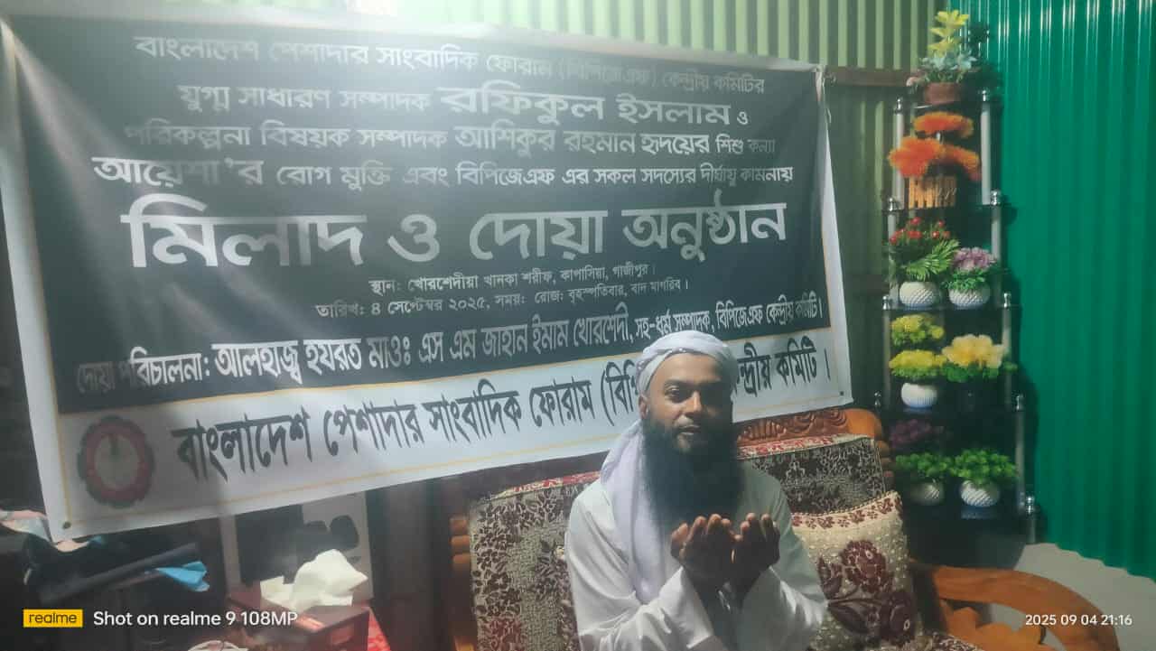 দোয়া পরিচালনা করেন: আলহাজ্ব হযরত মাওলানা এস এম জাহান ইমাম খোরশেদী, সহ-ধর্ম সম্পাদক, বিপিজেএফ কেন্দ্রীয় কমিটি।