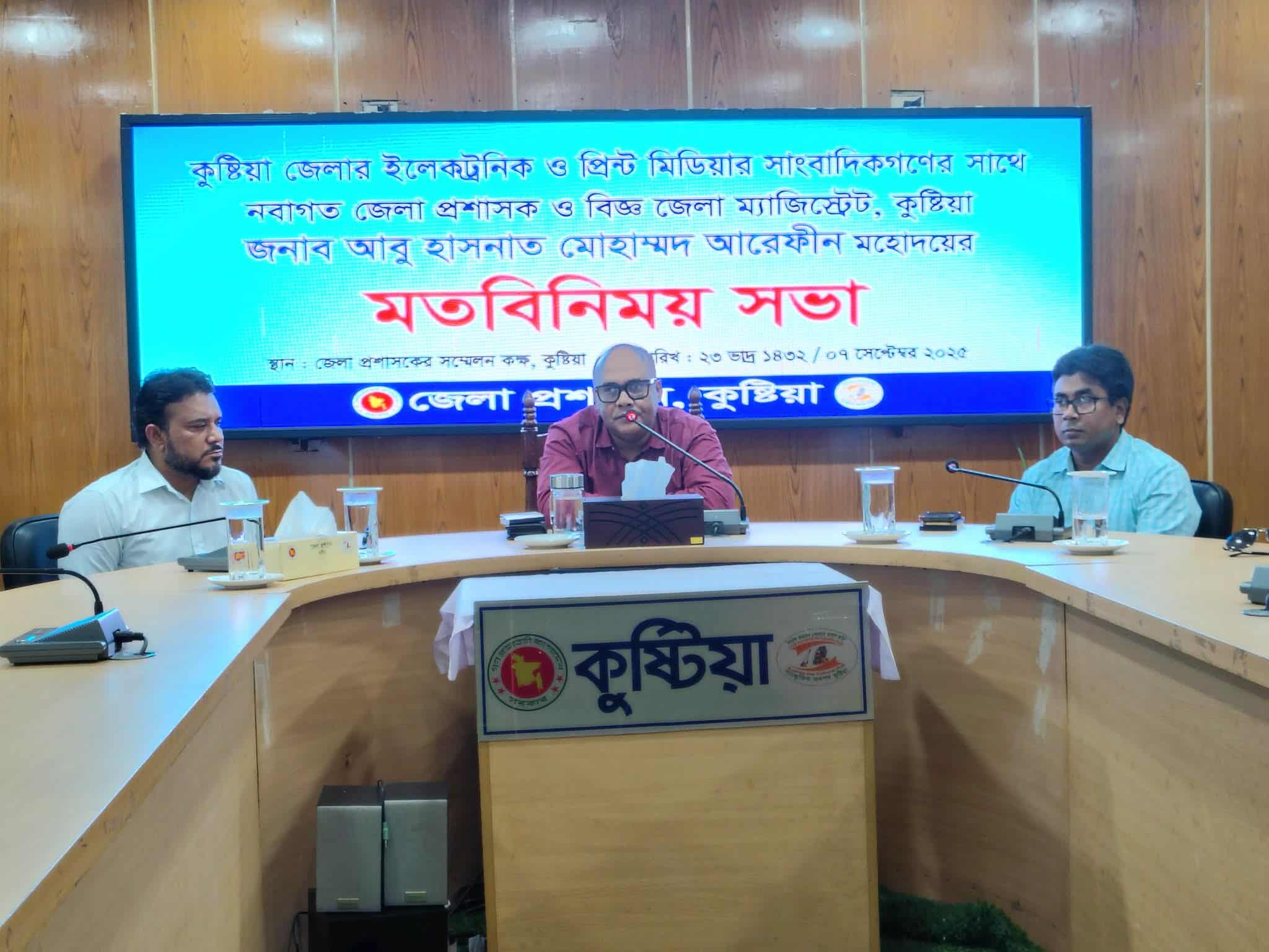 কুষ্টিয়ায় সাংবাদিকদের সাথে নবাগত জেলা প্রশাসক আবু হাসনাত মোহাম্মদ আরেফীন মতবিনিময় সভা করেছেন।