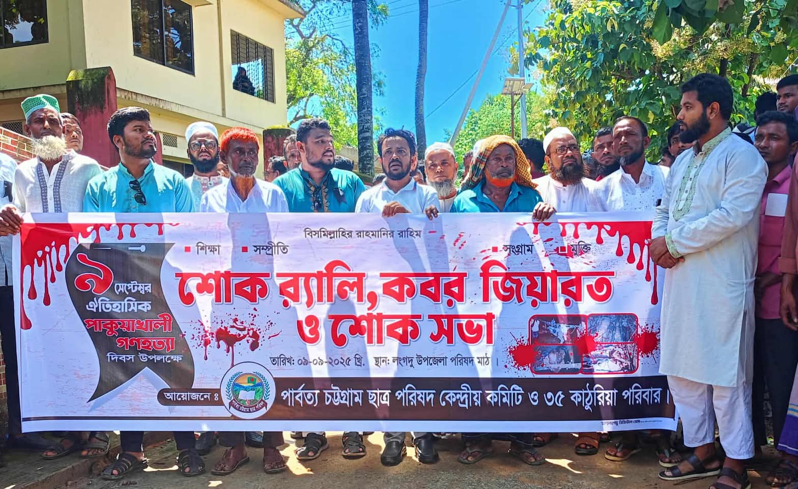 রাঙ্গামাটির লংগদুতে ১৯৯৬ সালে পাকুয়াখালীতে ৩৫ কাঠুরিয়াকে তথাকথিত শান্তি বাহিনী কর্তৃক নির্মম ভাবে গণহত্যার ২৯ বছর পালন উপলক্ষে শোকর্যালি, শোকসভা ও কবর জিয়ারত অনুষ্ঠিত হয়েছে।
