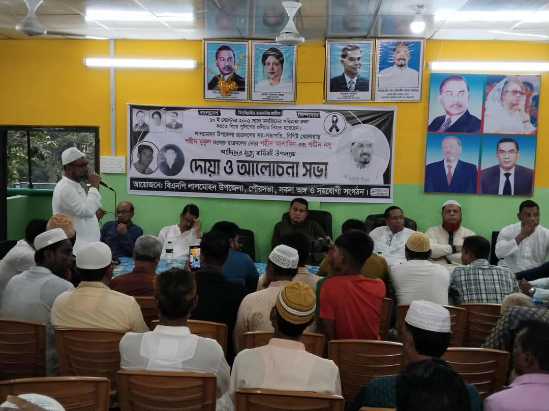 (১০সেপ্টম্বর)মঙ্গলবার সকালে লালমোহন উপজেলা বিএনপি'র কার্যালয়ে উপজেলা,পৌরসভা বিএনপি ও সহযোগী অংঙ্গ সংগঠনের আয়োজনে এই দোয়া ও আলোচনা সভা অনুষ্ঠিত হয়।