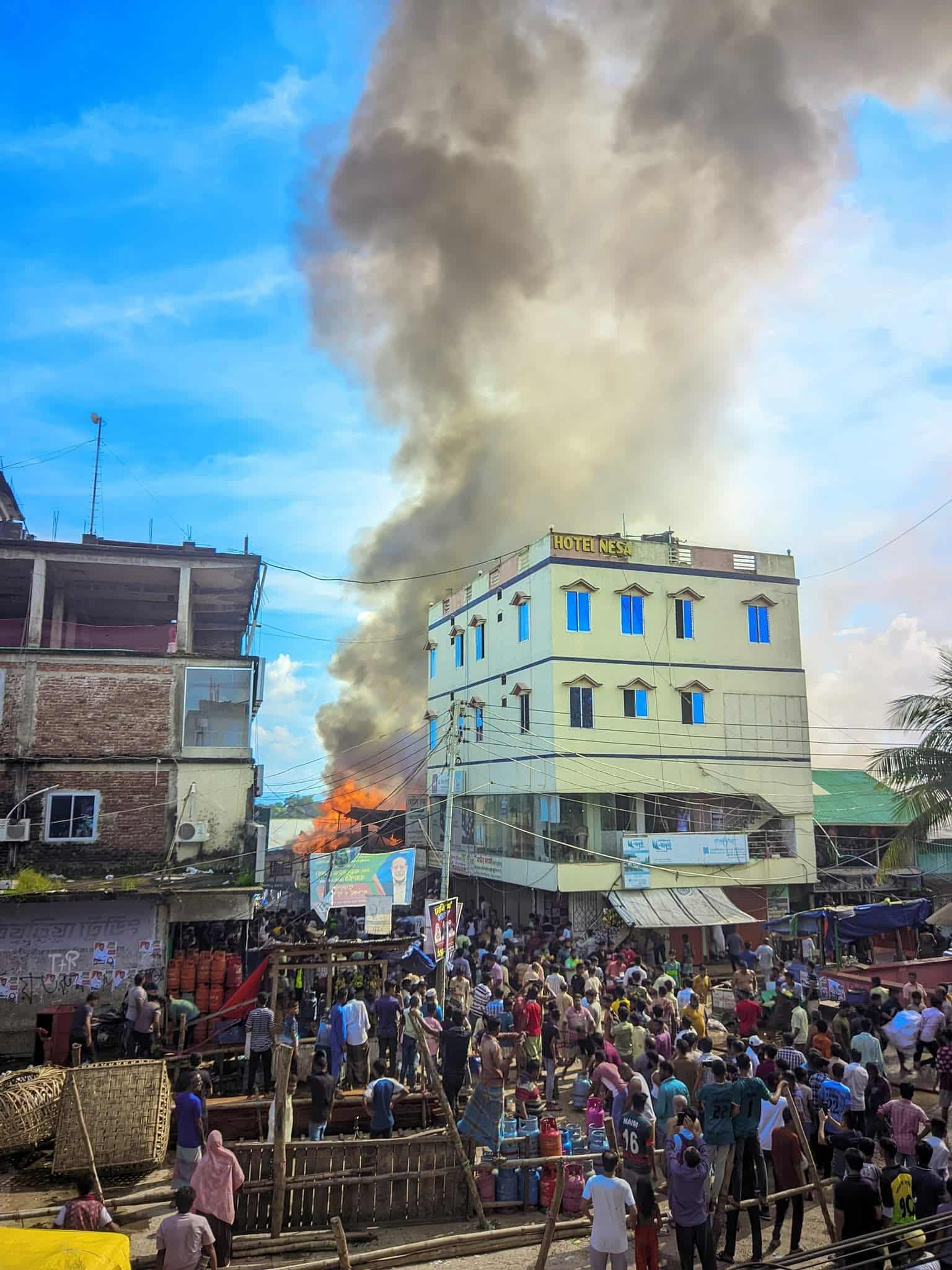 ততক্ষণে আবুল হোসেনের হোটেল ( সাবেক নুর জাহান হোটেল), জসিমের পান-সিগারেটের দোকান, লঞ্চঘাট ইবাদত খানা, নিরঞ্জন বড়ুয়ার জনতা হোটেল, শিবু বড়ুয়ার কুলিং কর্ণার ও বাসা, বিপুল বড়ুয়ার দোকান ও বাসা, রফিক সওদাগরের দোকান, গিয়াস উদ্দিন (রাকিব টেলিকম) নিপুণ ওয়ার্কশপ ও মামুন আইসক্রিম ফ্যাক্টরীও পুড়ে যায়।