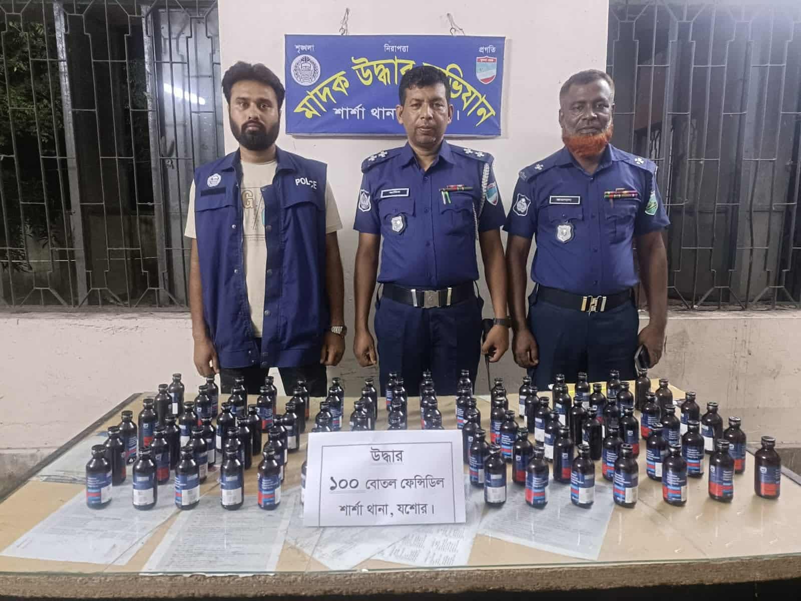 যশোরের শার্শাথানা পুলিশের অভিযানে ১০০ বোতল ফেনসিডিল উদ্ধার করেছে পুলিশ।