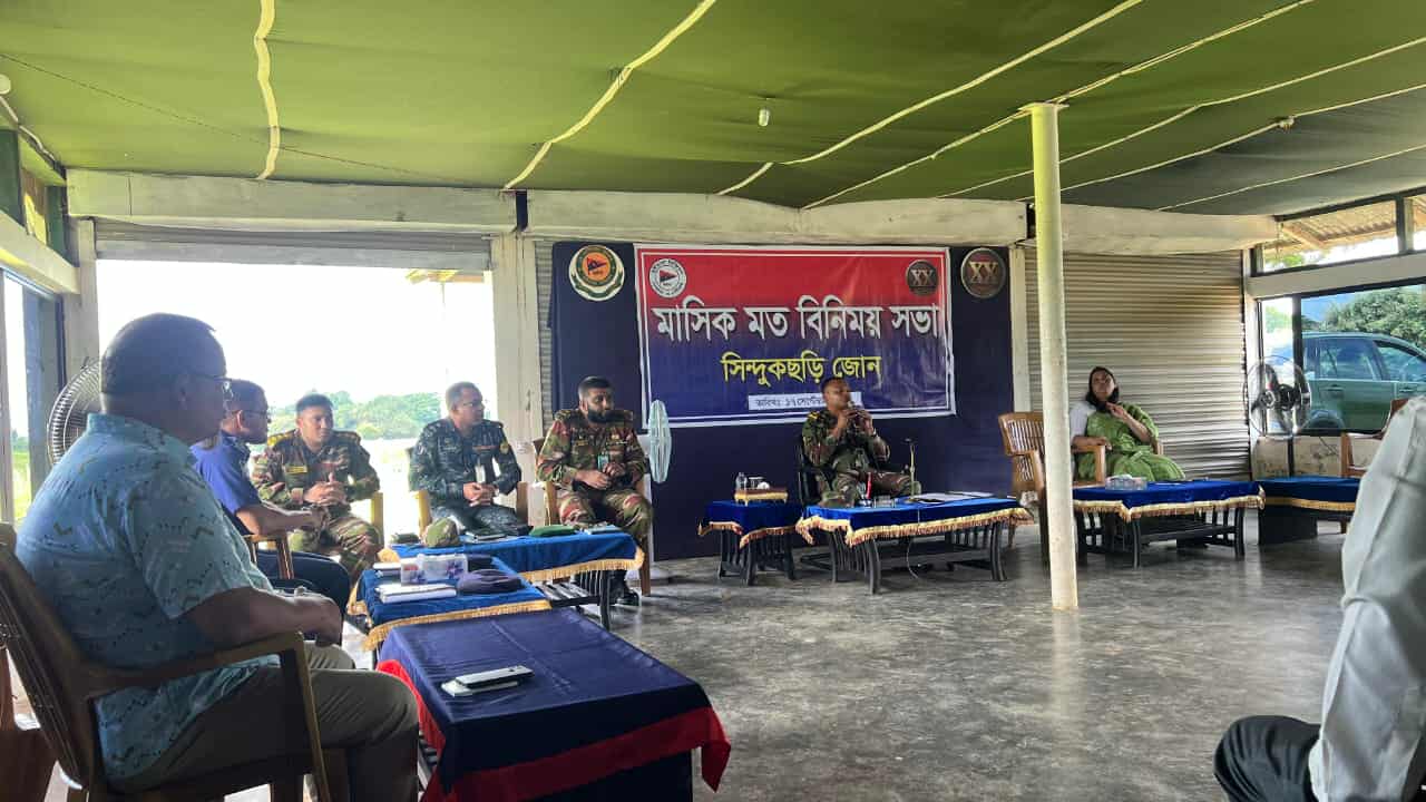 খাগড়াছড়ির গুইমারা ২০ ফিল্ড রেজিমেন্ট আর্টিলারি সিন্দুকছড়ি জোনের উদ্যোগে মাসিক মতবিনিময় সভা অনুষ্ঠিত।