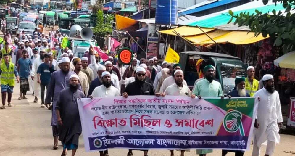 আজ শুক্রবার (২৬ সেপ্টেম্বর ২০২৫) জুমার নামাজ শেষে ইসলামী আন্দোলন বাংলাদেশ, দীঘিনালা উপজেলা শাখার উদ্যোগে এক বিক্ষোভ মিছিল ও সমাবেশ অনুষ্ঠিত হয়েছে।