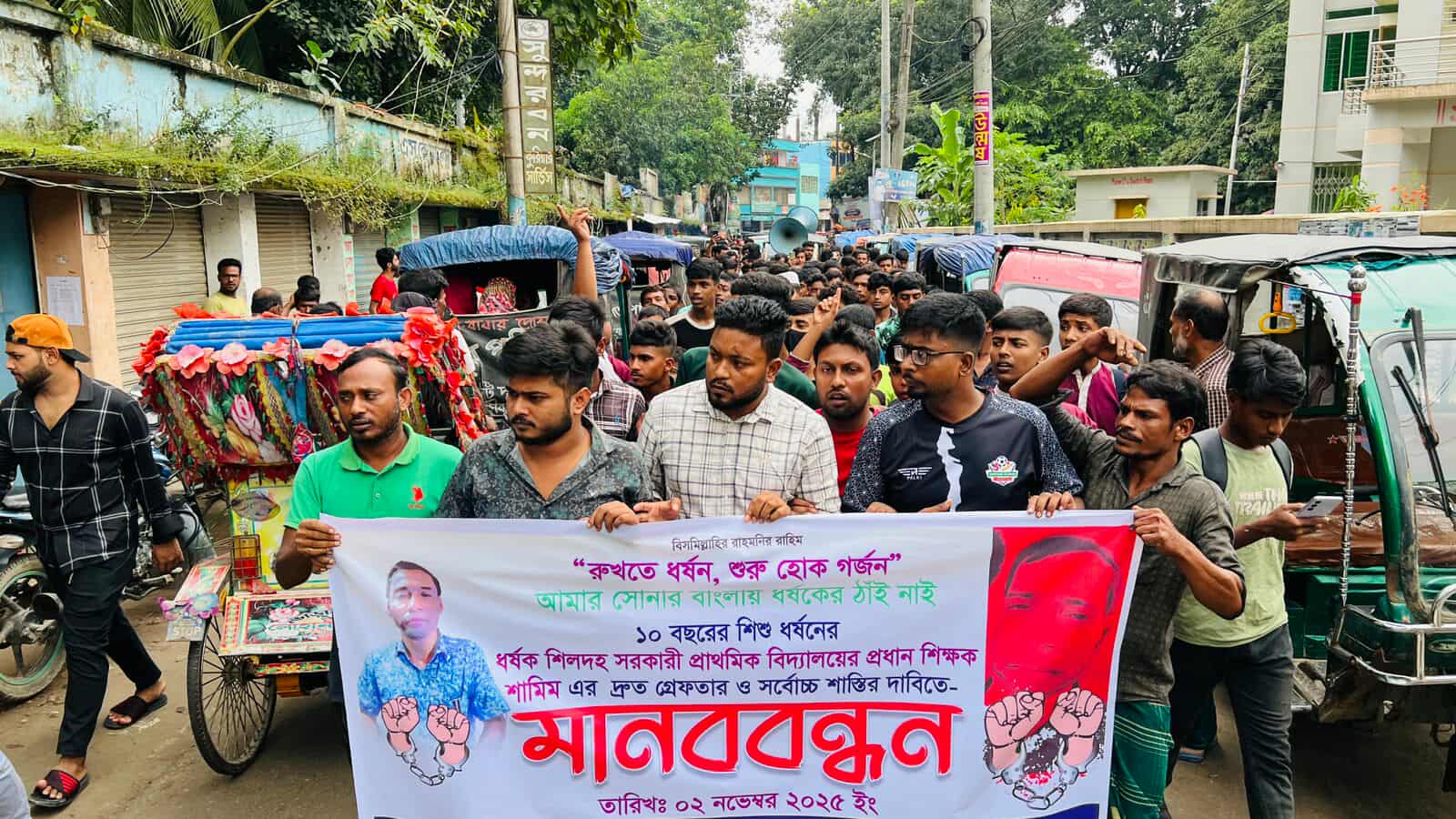 মানববন্ধনে বক্তারা বলেন, একজন শিক্ষক সমাজের আলোকবর্তিকা। কিন্তু প্রধান শিক্ষক শামীম যে জঘন্য অপরাধ করেছে, তা সমাজকে কলঙ্কিত করেছে। আমরা তার দৃষ্টান্তমূলক শাস্তি চাই, যাতে ভবিষ্যতে কেউ এমন ঘৃণ্য কাজ করার সাহস না পায়।