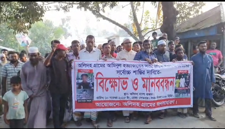 সিরাজগঞ্জের সলঙ্গায় অটো-ভ্যান চালক আমিনুল ইসলাম (২০) এর খুনিদের দৃষ্টান্তমূলক শাস্তির দাবিতে বিক্ষোভ মিছিল ও মানববন্ধন করেছে এলাকাবাসী। অলিদহ গ্রামের জনসাধারণের আয়োজনে অত্র এলাকাবাসী ও নিহত আমিনুলের স্বজনরা সোমবার (১০নভেম্বর) বিকালে অলিদহ বাংলা বাজারে বিক্ষোভ মিছিল ও মানববন্ধনে অংশ নিতে নিহত আমিনুলের নিজ গ্রাম অলিদহসহ আশপাশের কয়েক গ্রামের নারী-পুরুষ ও তাঁর স্বজনরা অংশ গ্রহণ করে। মিছিলকারীরা স্লোগানে স্লোগানে আমিনুল খুনিদের ফাঁসির দাবি জানায়। মিছিলটি অলিদহ বাজার ঘুরে মাছ বাজারে গিয়ে শেষ হয়। সর্বস্তরের গ্রামবাসীর অংশ গ্রহণে ঘণ্টাব্যাপী মানববন্ধনে বক্তারা, অটো-ভ্যানচালক আমিনুল ইসলামের খুনের সঙ্গে জড়িতদের দ্রুত দৃষ্টান্তমূলক বিচার নিশ্চিতের দাবি জানায়।