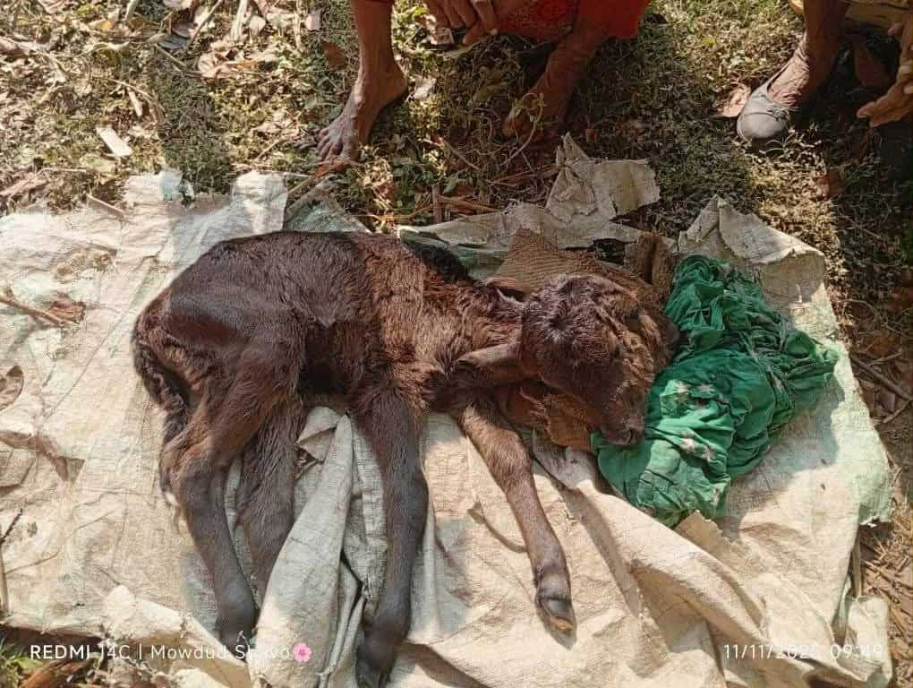 ঠাকুরগাঁওয়ের রাণীশংকৈল উপজেলার লেহেম্বা ইউনিয়নের গাগুয়া গ্রামে দুই মাথার এক নবজাতক বাছুরের জন্ম নিয়ে চাঞ্চল্যের সৃষ্টি হয়েছে। সোমবার (১০ নভেম্বর) সন্ধ্যায় স্থানীয় কৃষক মো. জালালের গাভীটি এই বিরল আকৃতির বাছুরের জন্ম দেয়।