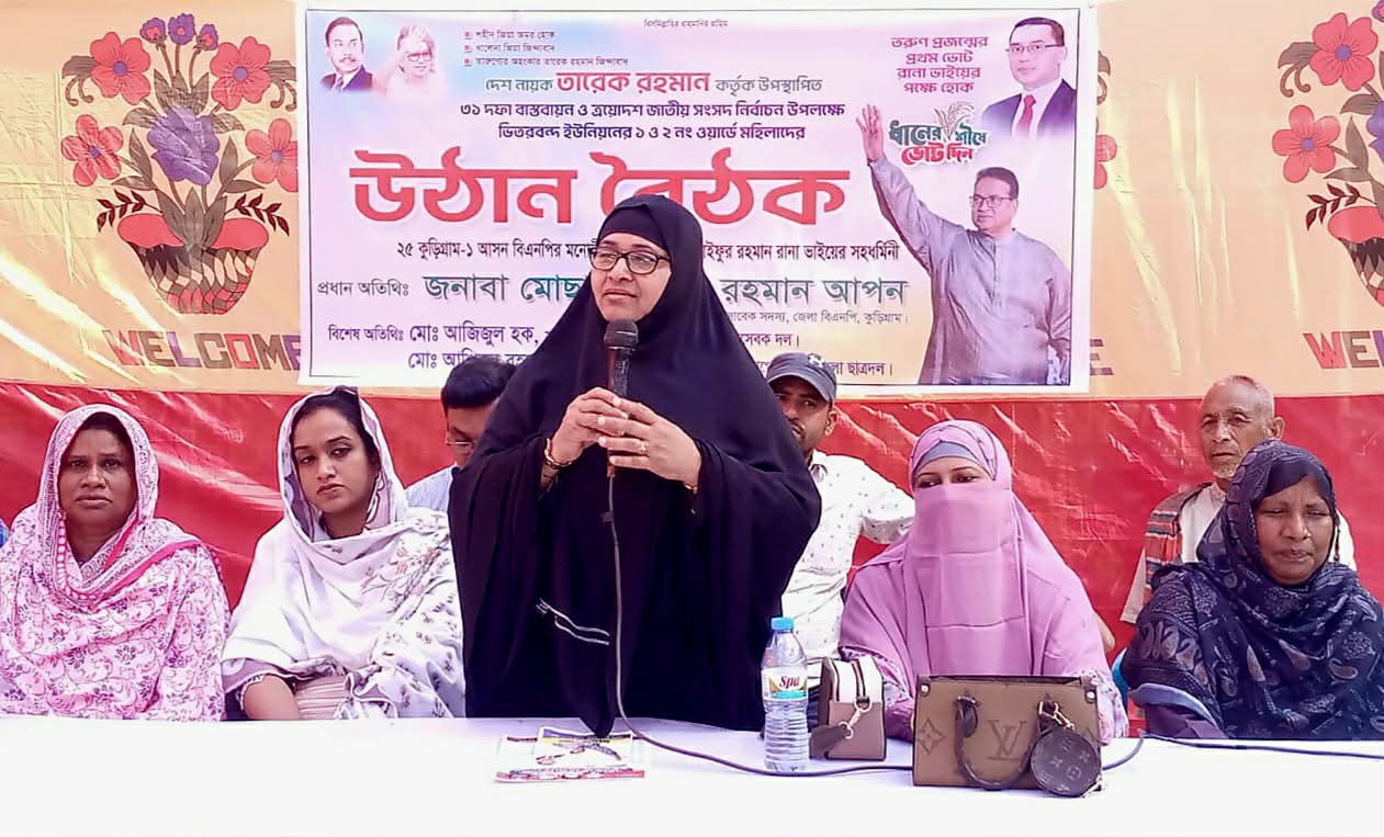 আসন্ন ত্রয়োদশ জাতীয় সংসদ নির্বাচনকে সামনে রেখে কুড়িগ্রাম-১ আসনে বিএনপির মনোনীত প্রার্থী সাইফুর রহমান রানাকে জয়ী করতে তৃণমূলে মহিলা ভোটারদের মাঝে বেড়েছে ব্যাপক প্রচারণা। এরই ধারাবাহিকতায় শুক্রবার (১৪ নভেম্বর) দুপুরে উপজেলার ভিতরবন্দ ইউনিয়নের ১নং ওয়ার্ড সুকানদিঘি এলাকায় মোজাম্মেল মাস্টারের বাড়ি এবং ২নং ওয়ার্ড ডাকনিরপাঠে জয়নাল আবেদীনের বাড়িতে অনুষ্ঠিত হয় নারী ভোটারদের নিয়ে উঠান বৈঠক। প্রায় ৪ শতাধিক নারী ভোটারের উপস্থিতিতে উঠোন বৈঠকটির মাধ্যমে এলাকাজুড়ে নির্বাচনী উত্তাপ ছড়িয়ে পড়ে। বৈঠকে প্রধান অতিথি হিসেবে উপস্থিত ছিলেন বিএনপি মনোনীত প্রার্থী সাইফুর রহমান রানা’র সহধর্মিণী ও কুড়িগ্রাম জেলা বিএনপির সাবেক সদস্য মোছাঃ শামিমা রহমান আপন।