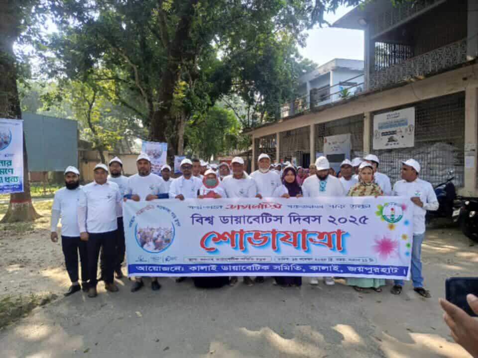 জয়পুরহাটের কালাইয়ে বিশ্ব ডায়াবেটিস দিবস ২০২৫ উপলক্ষে র্যালি, আলোচনা সভা ও ফ্রি ক্যাম্পেইন অনুষ্ঠিত হয়েছে।