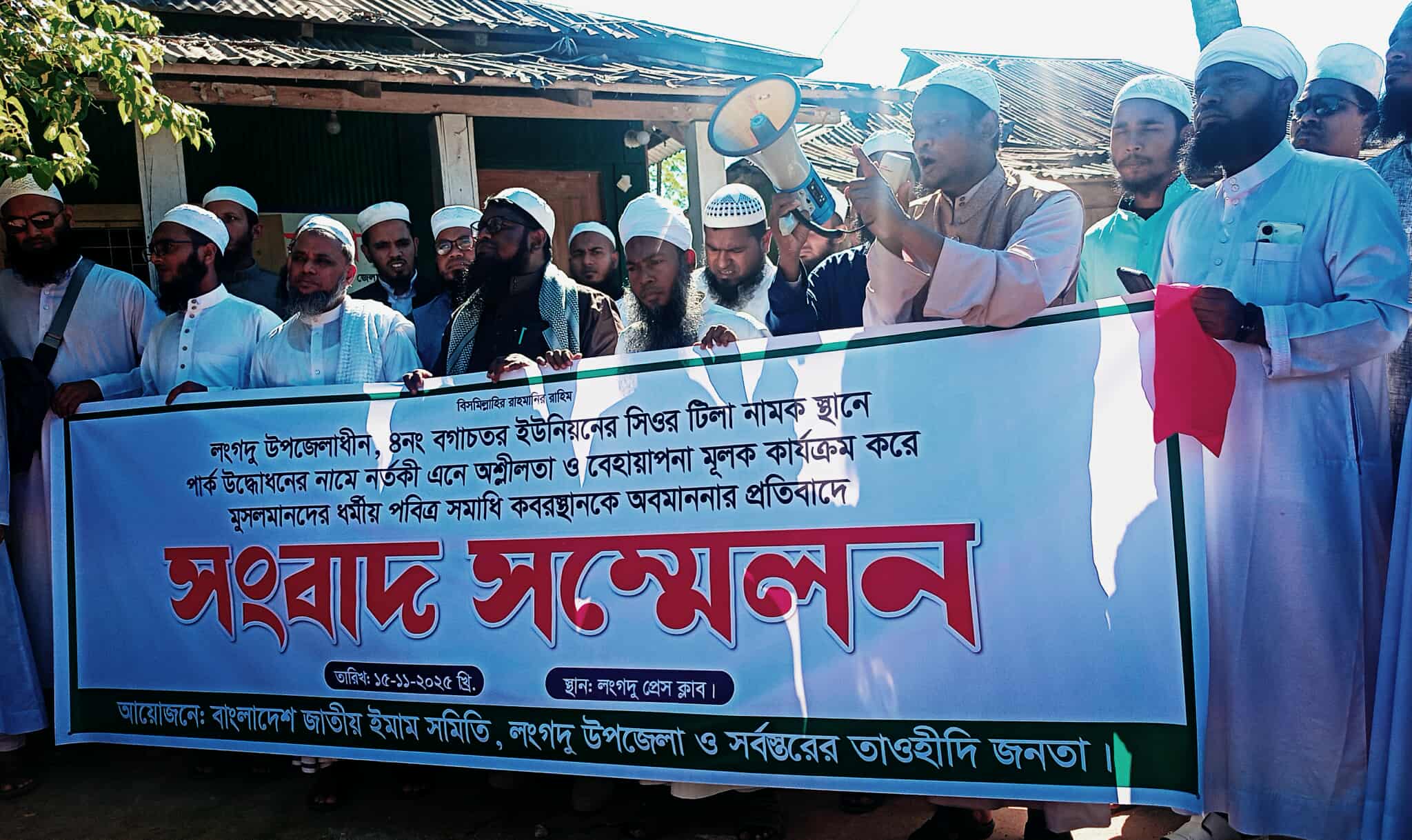 রাঙ্গামাটির লংগদুতে বগাচতর ইউনিয়নের জালিয়াপাড়া সিওর টিলা নামক স্থানে শিশুপার্কের নামে কবরস্থানের জায়গায় কবরের উপর মঞ্চ তৈরী করে অশ্লীল গানবাজনা ও নৃত্য পরিবেশনের প্রতিবাদে সংবাদ সম্মেলন করেছে লংগদু উপজেলা ইমাম সমিতি ও সর্বস্তরের তৌহিদী জনতা।