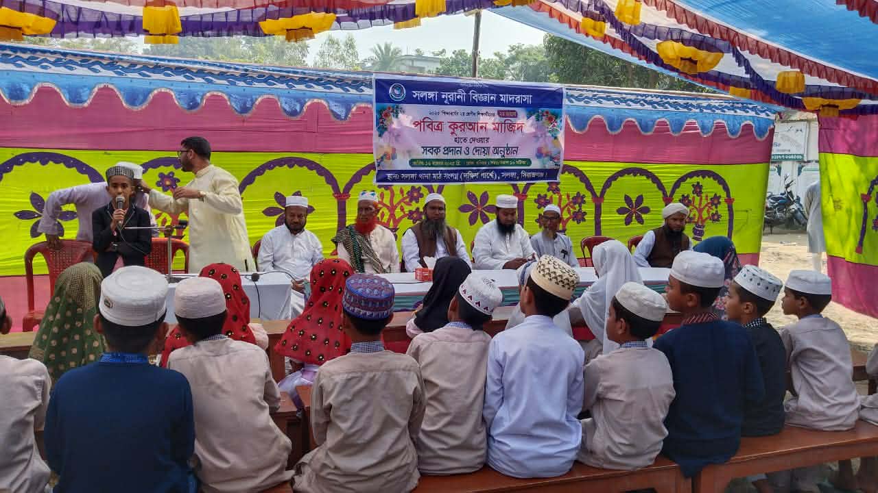 সিরাজগঞ্জের সলঙ্গা থানা মাঠ সংলগ্নে অবস্থিত “সলঙ্গা নূরানী বিজ্ঞান মাদ্রাসা”য় আজ রবিবার সকাল ১১ ঘটিকায় দ্বিতীয় শ্রেনির (২য় ব্যাচের) ২০জন ছাত্র/ছাত্রীদের হাতে কোরআন শরিফ শিক্ষার প্রথম ছবক প্রদান অনুষ্ঠিত হয়েছে।