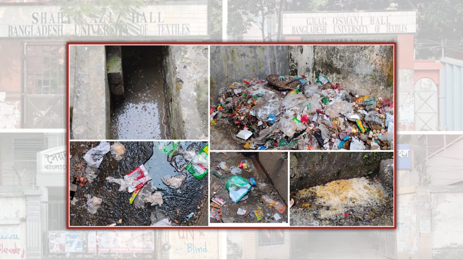 সরেজমিনে গিয়ে দেখা যায়, হলের বেশ কয়েকজন শিক্ষার্থী দিনের বেলাতেও মশারি টাঙিয়ে পড়ছেন কিংবা শুয়ে আছেন। বিশ্ববিদ্যালয়ের হলগুলোর পাশে অবস্থিত ড্রেনে বহুদিন ধরে জমে আছে নোংরা এবং জীবাণুবাহী স্থির পানি। হল সংলগ্ন খেলার মাঠের পাশে রাখা হয়েছে ময়লার স্তূপ। এছাড়া হলের পচাবাসি খাবারও ড্রেনের ভেতরেই আটকে থাকতে দেখা যায়। এসব ময়লার স্তূপ ও ড্রেনে আটকে থাকা নোংরা পানিতে মশার প্রজনন দ্রুত বাড়ছে।