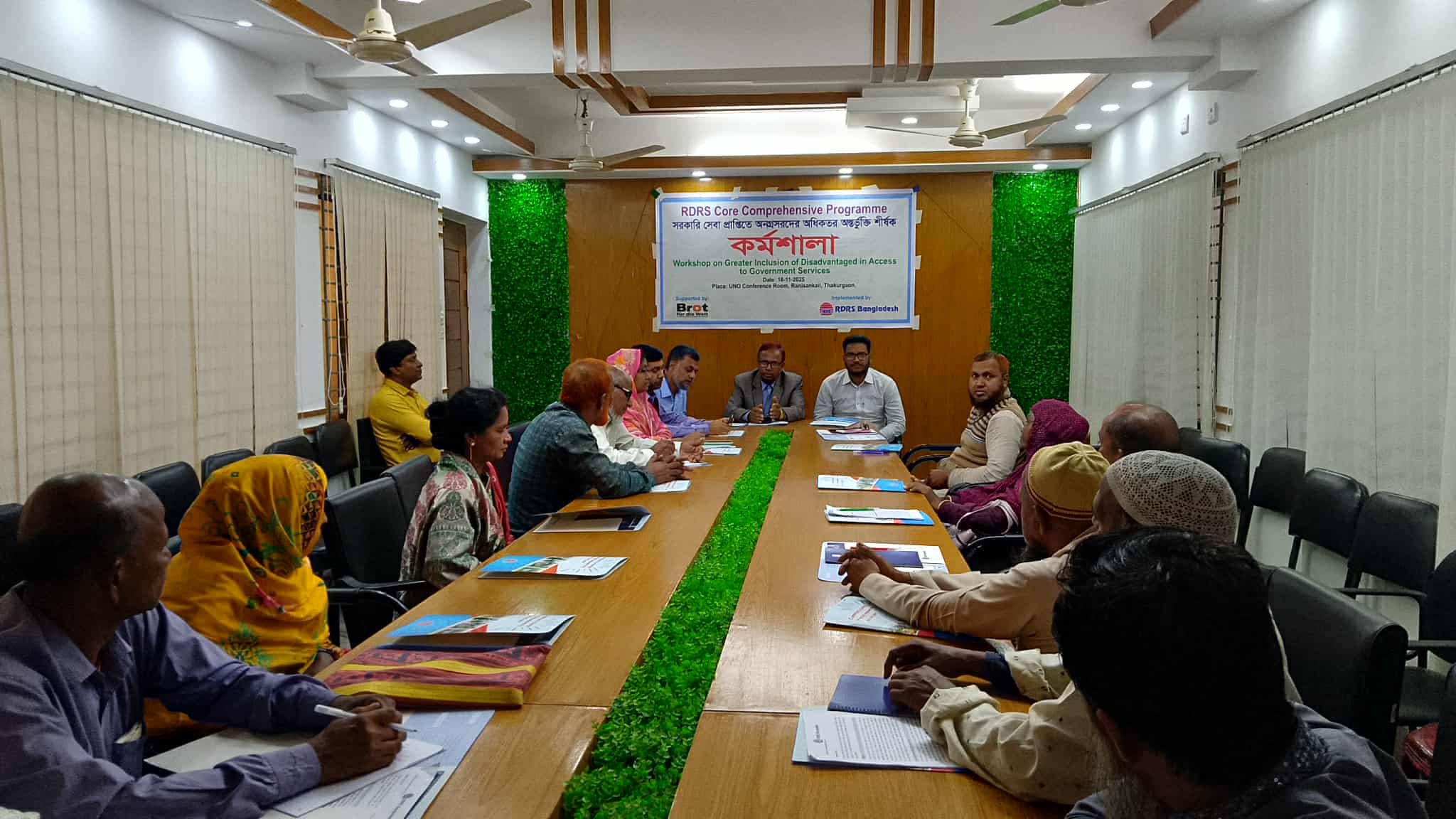 ঠাকুরগাঁওয়ের রাণীশংকৈল উপজেলা কনফারেন্স রুমে ১৮ নভেম্বর মঙ্গলবার বে- সরকারি সংস্থা আরডিআরএসের উদ্যোগে বিভিন্ন সরকারি কর্মকর্তাদের সাথে সেবা প্রাপ্তিতে অনগ্রসরদের অধিকতর অন্তর্ভুক্তি শীর্ষক কর্মশালা অনুষ্ঠিত হয়।
