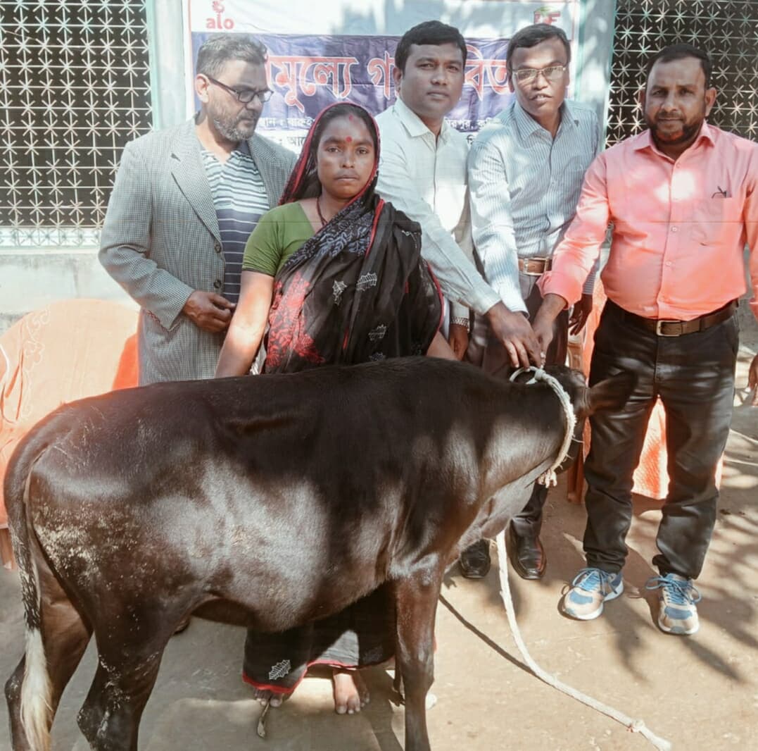 কুষ্টিয়ার মিরপুরে বিনামূল্যে গাভী বিতরণ করা হয়েছে। আলো স্বেচ্ছাসেবী পল্লী উন্নয়ন সংস্থার উদ্যোগে ও বাংলাদেশ এনজিও ফাউন্ডেশনের সহযোগিতায় বুধবার সকালে উপজেলার বারুইপাড়া ইউনিয়নের রায়পাড়া মন্দির প্রঙ্গনে এ গাভী বিতরণ করা হয়। আলো স্বেচ্ছাসেবী পল্লী উন্নয়ন সংস্থার সভাপতি অধ্যাপক আনোয়ার হোসেনের সভাপতিত্বে অনুষ্ঠানে প্রধান অতিথি ছিলেন উপজেলা প্রাণিসম্পদ কর্মকর্তা ডাঃ আব্দুল্লাহিল কাফি। এতে বিশেষ অতিথি ছিলেন প্রেসক্লাবের সাধারণ সম্পাদক রাশেদুজ্জামান রিমন, মিরপুর মহিলা কলেজের সহকারী অধ্যাপক আব্বাস উদ্দিন, আলো স্বেচ্ছাসেবী পল্লী উন্নয়ন সংস্থার প্রকল্প কর্মকর্তা ফারুক হোসেন প্রমুখ। এ সময়ে অতিথবৃন্দ ৪ জন দুঃস্থ নারীর মাঝে চারটি গাভী গরু বিতরণ করেন।