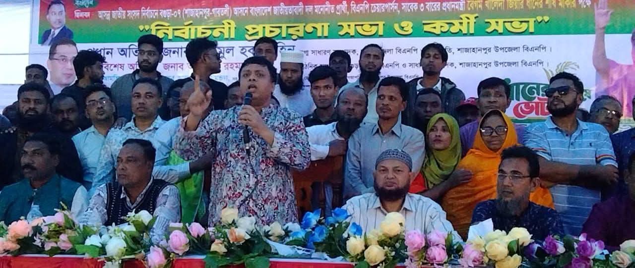 আসন্ন জাতীয় সংসদ নির্বাচনকে সামনে রেখে বগুড়া-৭ (শাজাহানপুর–গাবতলী) আসনে বাংলাদেশ জাতীয়তাবাদী দল (বিএনপি) মনোনীত প্রার্থী দলের চেয়ারপারসন ও সাবেক তিনবারের প্রধানমন্ত্রী বেগম খালেদা জিয়ার ধানের শীষ মার্কার পক্ষে নির্বাচনী প্রচারণা ও ভোটকেন্দ্র কমিটি গঠনে ইউনিয়ন বিএনপির কর্মীসভা অনুষ্ঠিত হয়েছে।