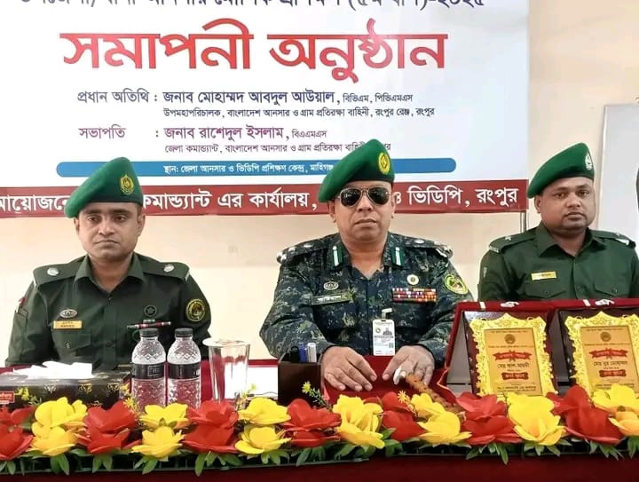 বুধবার, রংপুর নগরের মাহিগঞ্জ জেলা আনসার-ভিডিপি প্রশিক্ষণ কেন্দ্রে ১৪ দিন মেয়াদী ১৩৬ জন শিক্ষিত উপজেলা/থানা আনসার মৌলিক প্রশিক্ষণ (৫ম ধাপ) কোর্সের সমাপনী অনুষ্ঠানে প্রধান অতিথির বক্তব্যে তিনি এসব কথা বলেন।