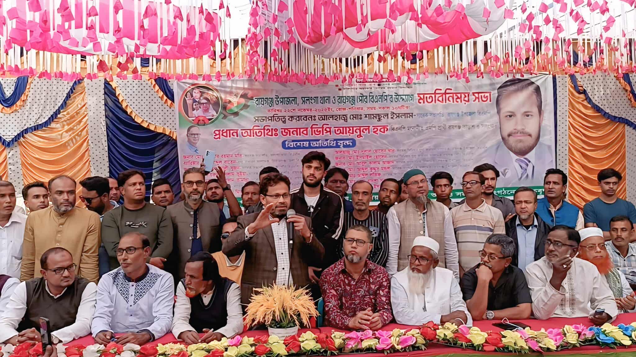 সমাবেশে প্রধান অতিথি হিসেবে উপস্থিত ছিলেন সিরাজগঞ্জ-৩ আসনে বিএনপির মনোনীত প্রার্থী ভিপি আয়নুল হক।