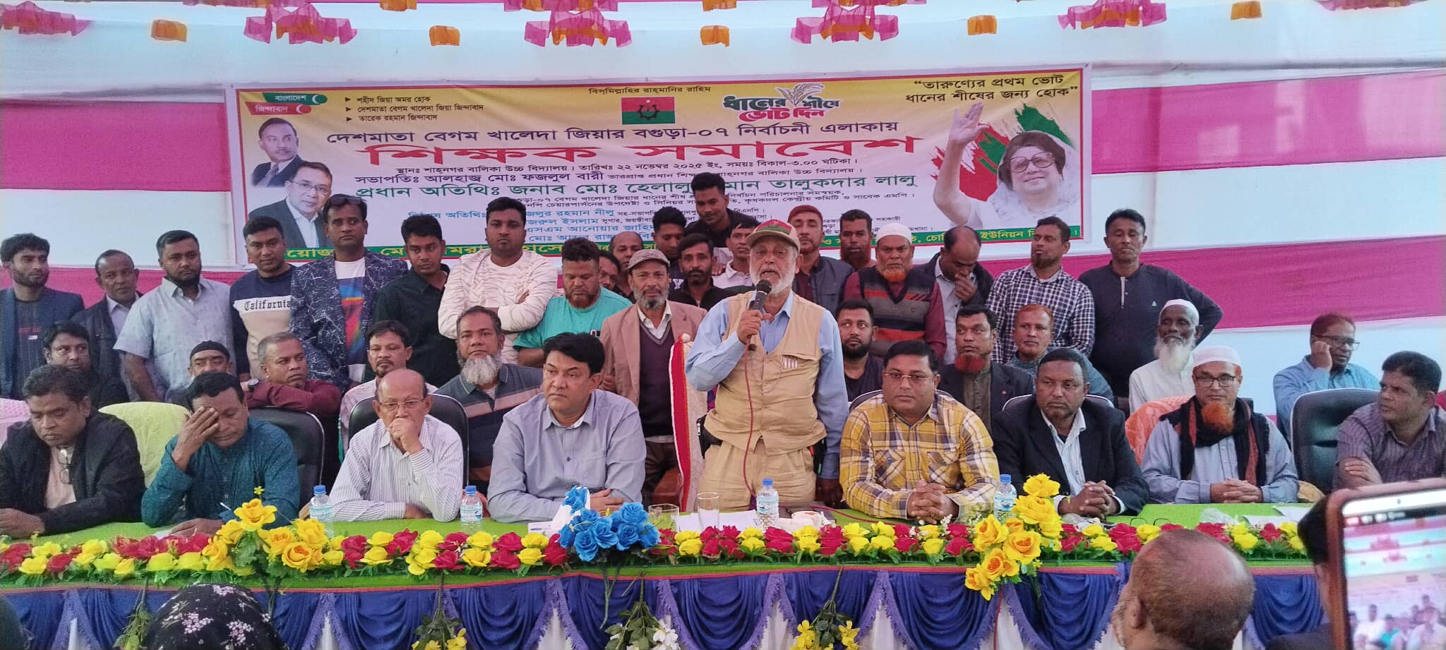 আসন্ন জাতীয় সংসদ নির্বাচনকে সামনে রেখে বগুড়া-০৭ (শাজাহানপুর–গাবতলী) আসনে বিএনপি মনোনীত প্রার্থী বেগম খালেদা জিয়ার ধানের শীষ প্রতীকের বিজয় নিশ্চিত করতে বগুড়ার শাজাহানপুরে শিক্ষক সমাবেশ অনুষ্ঠিত হয়েছে।