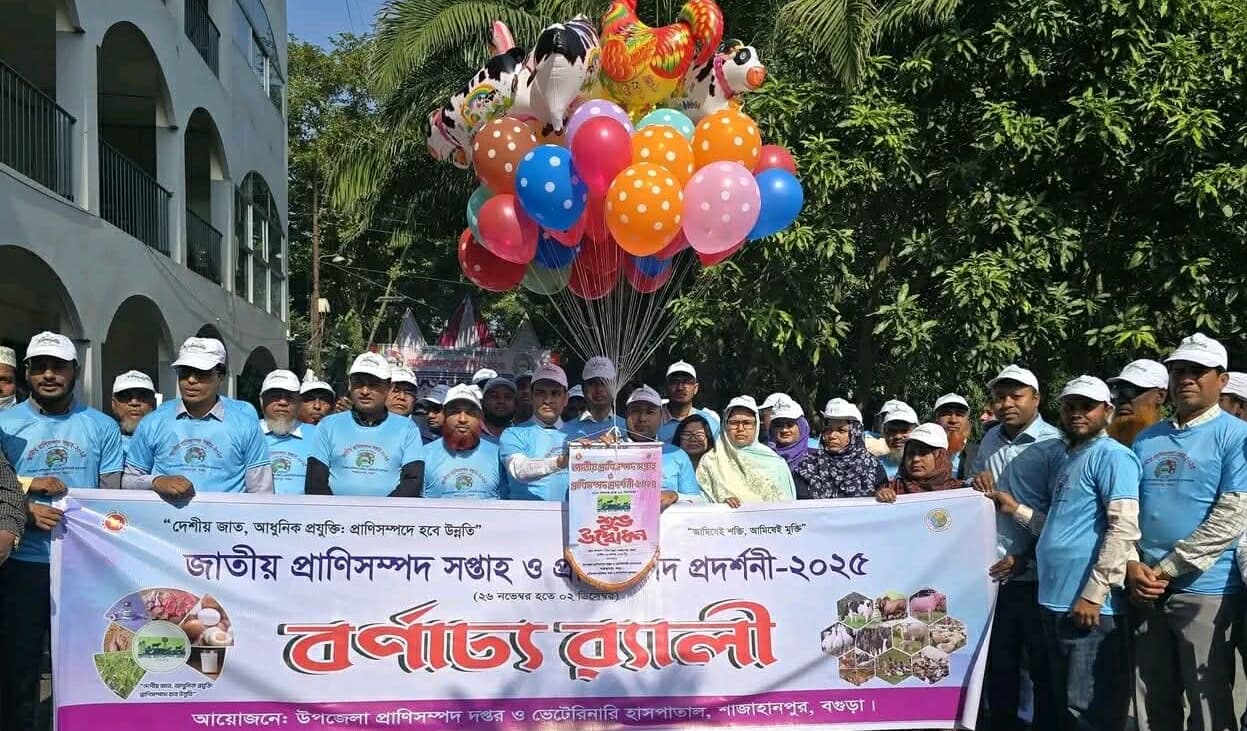 দেশীয় জাত, আধুনিক প্রযুক্তি, প্রাণিসম্পদে হবে উন্নতি— এ প্রতিপাদ্যকে সামনে রেখে বগুড়ার শাজাহানপুর উপজেলায় জাতীয় প্রাণিসম্পদ সপ্তাহ ২০২৫ উদযাপন করা হয়েছে।