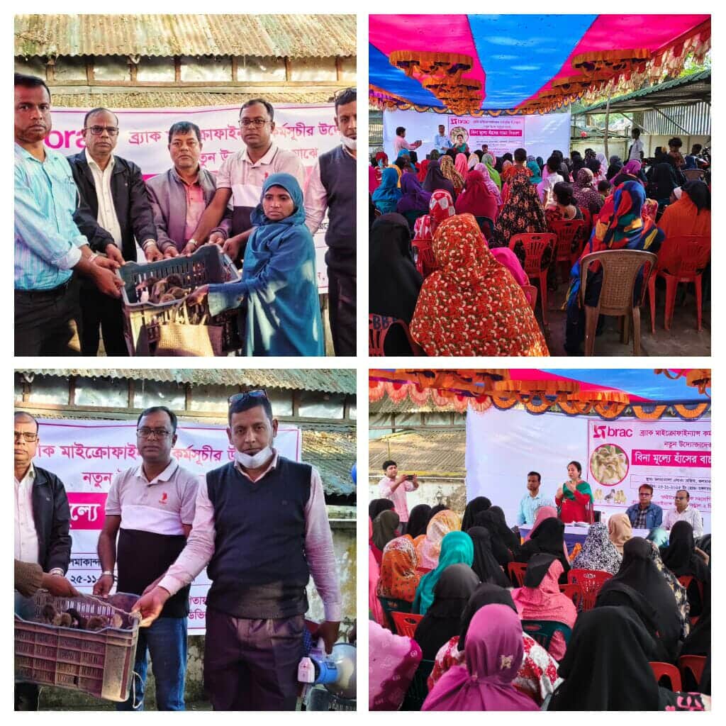 নেত্রকোনা জেলার কলমাকান্দা উপজেলায় ব্র্যাক মাইক্রোফাইন্যান্স কর্মসূচির উদ্যোগে দাবি ও বিসিইউপি (BCUP) কর্মসূচির সদস্যদের মাঝে বিনামূল্যে হাঁসের বাচ্চা বিতরণ করা হয়েছে।