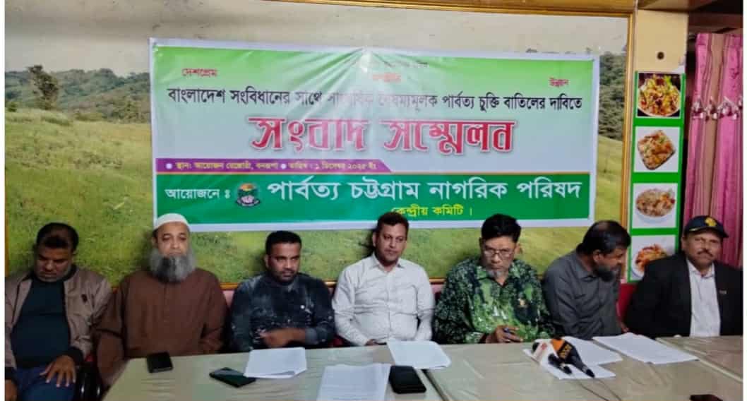 বাংলাদেশের সংবিধানের সাথে সাংঘর্ষিক একতরফা স্বার্থ সম্বলিত পার্বত্য চট্টগ্রাম চুক্তি বাতিল ও চার দফা দাবীতে সংবাদ সম্মেলন করেছে পার্বত্য চট্টগ্রাম নাগরিক পরিষদ (পিসিএনপি) কেন্দ্রীয় কমিটি।