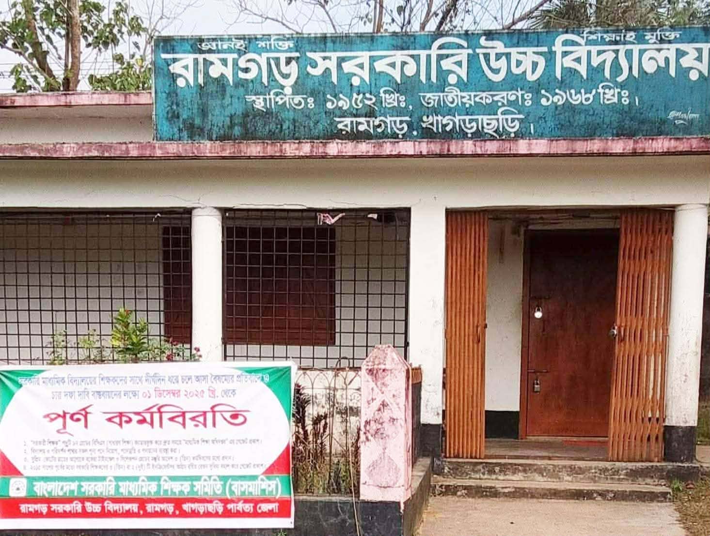 সারাদেশের মাধ্যমিক বিদ্যালয় গুলোর ন্যায় খাগড়াছড়ির রামগড় সরকারি উচ্চ বিদ্যালয়ে কর্মবিরতির কারণে স্থগিত হয়েছে বিদ্যালয়ের চলমান বার্ষিক পরীক্ষা।