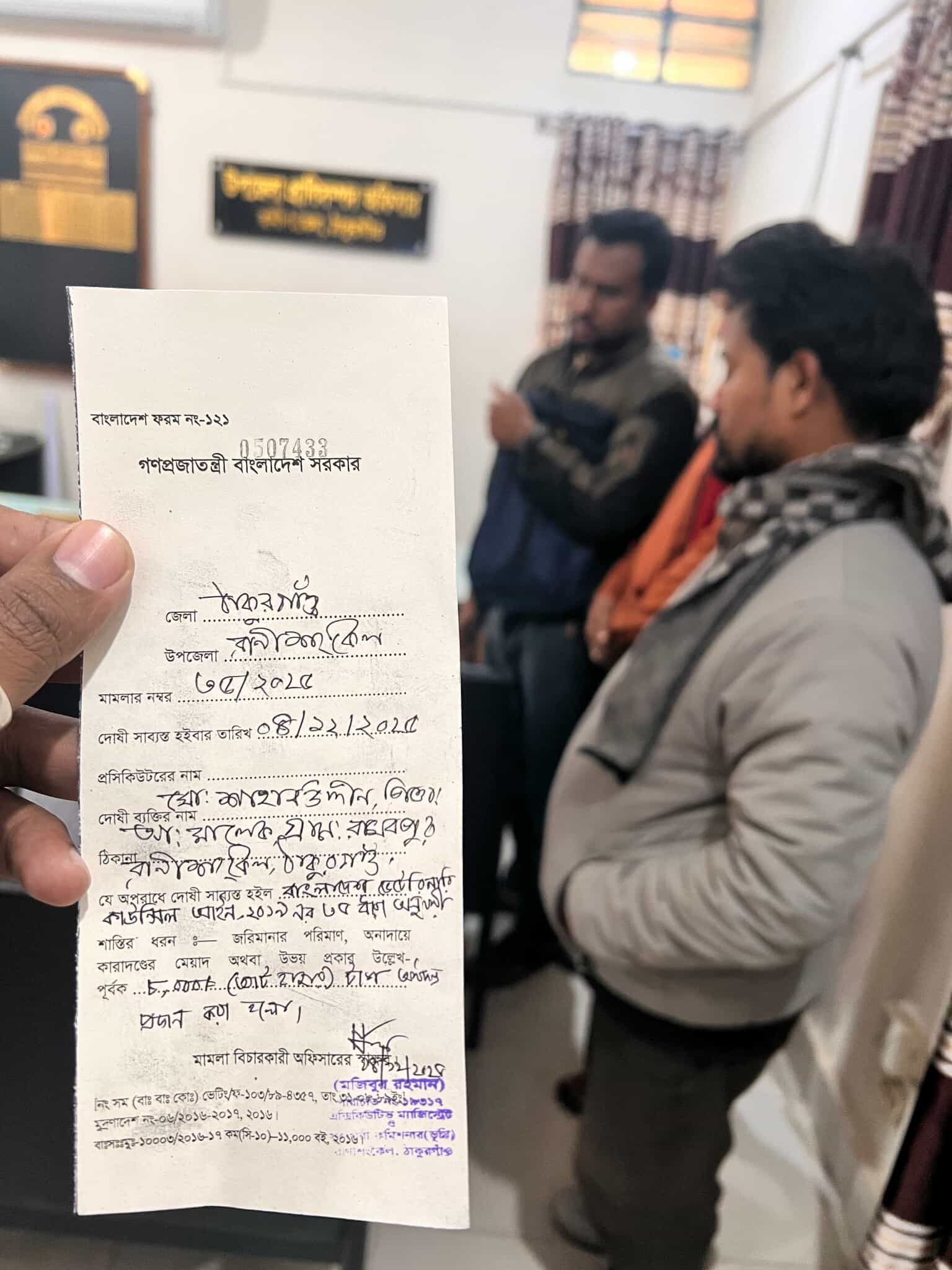 এ ব্যাপারে সহকারি কমিশনার (ভূমি) মজিবুর রহমানের নেতৃত্বাধীন ভ্রাম্যমাণ আদালতের মাধ্যমে বাংলাদেশ ভেটেনারি আইন ২০১৯ এর ৩৫ ধারা অনুযায়ী তাকে জরিমানা করা। সেখানে অনুমোদনহীন ভাবে প্রেসক্রিপশন লেখার প্রমাণ পাওয়া গেলে তাকে ৮,০০০ টাকা জরিমানা করা হয় ।