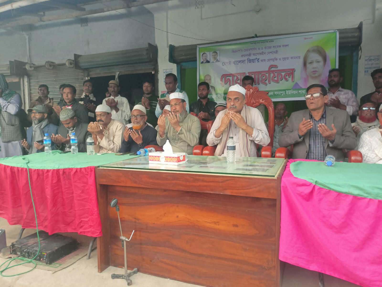 কুষ্টিয়ার মিরপুরে বেগম খালেদা জিয়ার রোগমুক্তি কামনায় দোয়া মাহফিল অনুষ্ঠিত হয়েছে। জেলা মিরপুর উপজেলা সদরপুর ইউনিয়ন বিএনপির উদ্যোগে শনিবার বিকেলে কাতলামারী বাজারে এ দোয়া মাহফিল অনুষ্ঠিত হয়। সদরপুর ইউনিয়ন বিএনপির সভাপতি এমদাদুল হকের সভাপতিত্বে অনুষ্ঠানে প্রধান অতিথির বক্তব্যে বিএনপির জাতীয় নির্বাহী কমিটির সদস্য কুষ্টিয়া-২ (মিরপুর-ভেড়ামারা) আসনের বিএনপির মনোনীত সংসদ সদস্য পদপ্রার্থী ব্যারিস্টার রাগীব রউফ চৌধুরী বলেন, আওয়ামী লীগ সরকার বেগম খালেদা জিয়াকে বিনা চিকিৎসায মৃত্যুর দিকে ঠেলে দিয়ে চরমভাবে মানবাধিকার লঙ্ঘন করেছে। দেশের সর্বস্তরের জনগণ বেগম খালেদা জিয়ার রোগমুক্তি কামনা করছে। বেগম খালেদা জিয়ার আপোষহীন নেতৃত্বের ফলেই জনগণ ভোটাধিকার ফিরে পেয়েছেন। তাই জনগণের ভোটাধিকার নিশ্চিত করতে সরকারকে যথাসময়ে নির্বাচন দিতে হবে। তিনি আরো বলেন, বেগম খালেদা জিয়াই একমাত্র নেত্রী যিনি জনগণের ভোটাধিকার নিশ্চিত করতে কোন সরকারের সঙ্গে আপোষ করেননি। দেশনেত্রী বেগম খালেদা জিয়া জনগণের ভোটাধিকার আদায়ে সব সময় ছিলেন আপোষহীন। জজ কোর্টের পিপি এডভোকেট সিরাজুল ইসলাম, উপজেলা বিএনপির সাবেক সাধারণ সম্পাদক রহমত আলী রব্বান, সিনিয়ার যুগ্ম সাধারণ সম্পাদক আফজাল হোসেন, সাবেক যুগ্ম সাধারণ সম্পাদক শাহিনুল ইসলাম শাহিন, সাবেক সাংগঠনিক সম্পাদক সাইদুল ইসলাম মকবুল, সদরপুর ইউনিয়ন বিএনপির সাবেক সভাপতি মোশাররফ হোসেন মুসা, পোড়াদহ ইউনিয়ন বিএনপির সাধারণ সম্পাদক খন্দকার মেহেদী হাসান পলাশ, উপজেলা বিএনপির সাবেক প্রশিক্ষণ বিষয়ক সম্পাদক আছের আলী, জেলা বিএনপির সাবেক সদপ্তর সম্পাদক হেলাল উদ্দিন, উপজেলা যুবদলের যুগ্ম আহবায়ক শরিফুল ইসলাম, সাইফুল ইসলাম, কামরুজ্জামান কাকন, উপজেলা কৃষক দলের অ্যাডভোকেট খায়রুজ্জামান, উপজেলা ছাত্রদলের সদস্য সচিব ছাব্বির আহম্মেদ প্রমুখ। অনুষ্ঠানটি পরিচালনা করেন সদরপুর ইউনিয়ন বিএনপির সাধারণ সম্পাদক আশরাফুল ইসলাম আশা। পরে বেগম খালেদা জিয়ার আশু রোগমুক্তি কামনা করে দোয়া মোনাজাত করা হয়।