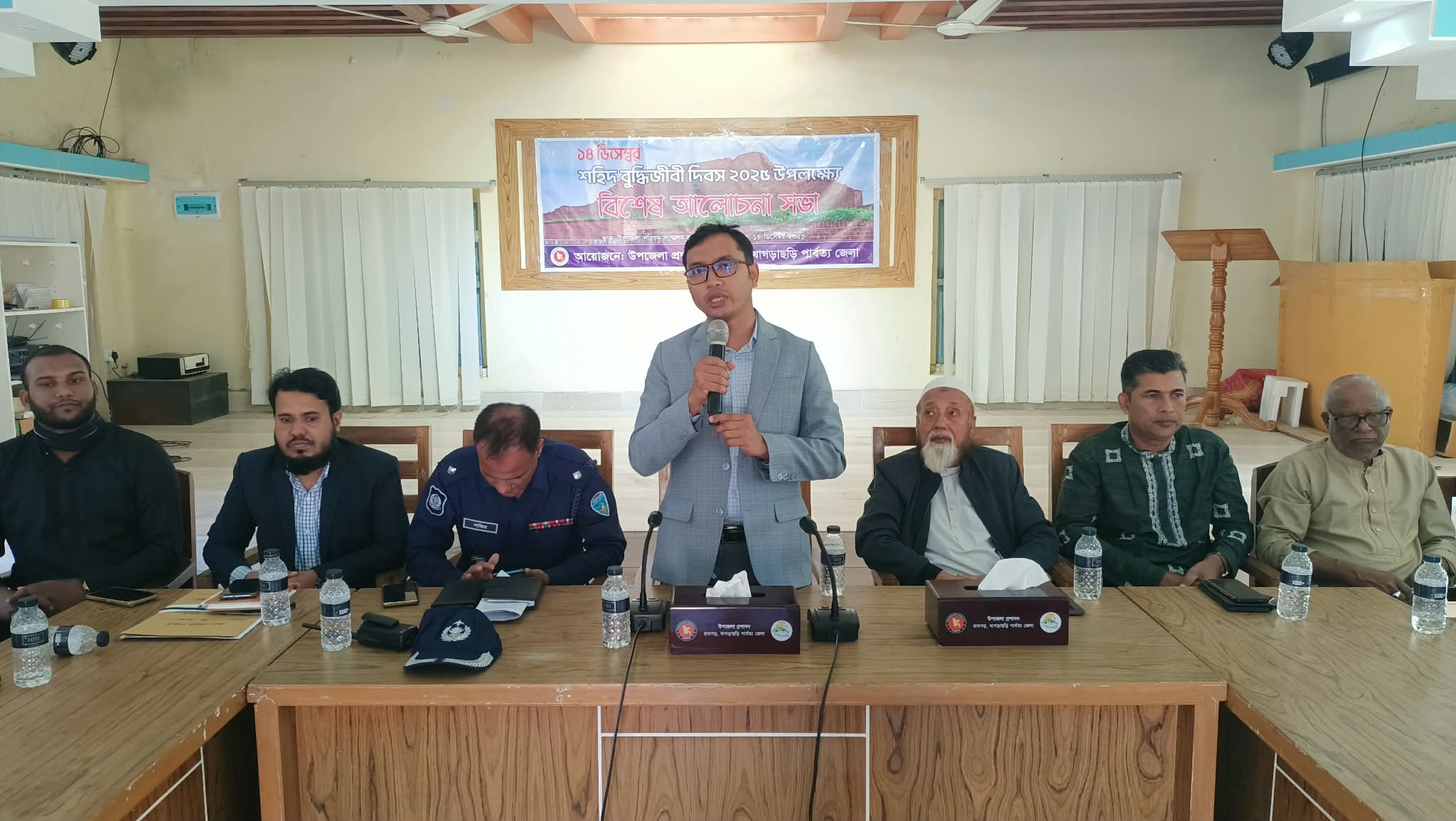 রবিবার ১৪ই ডিসেম্বর সকালে উপজেলা পরিষদ সম্মেলন কক্ষে প্রশাসনের আয়োজনে উপজেলা নির্বাহী কর্মকর্তা কাজী শামীম এর সভাপতিত্বে এক আলোচনা সভা অনুষ্ঠিত হয়।