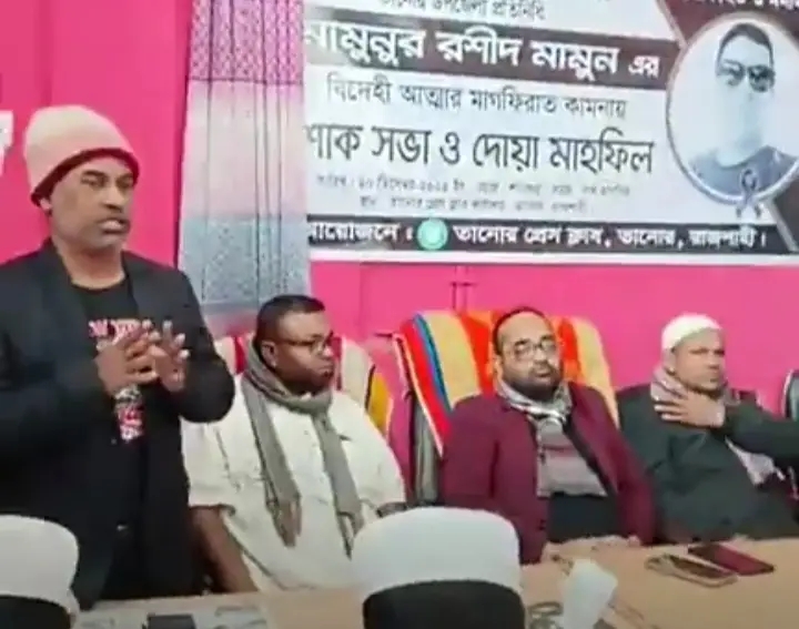 দোযা মোনাজাত করেন তানোর থানা মসজিদের প্রেস ইমাম। এসময় তানোর উপজেলায় কর্মরত সকল সাংবাদিক ও বিভিন্ন রাজনৈতিক দলের নেতৃবৃন্দ ও থানা মোড়ের বিভিন্ন দোকানী ও সুধীজন দোয়ার অংশ গ্রহন করেন। উল্লেখ্য, গত বুধবার ভোরে হঠাৎ নিজ বাস ভবনে ইন্তেকাল করেন।