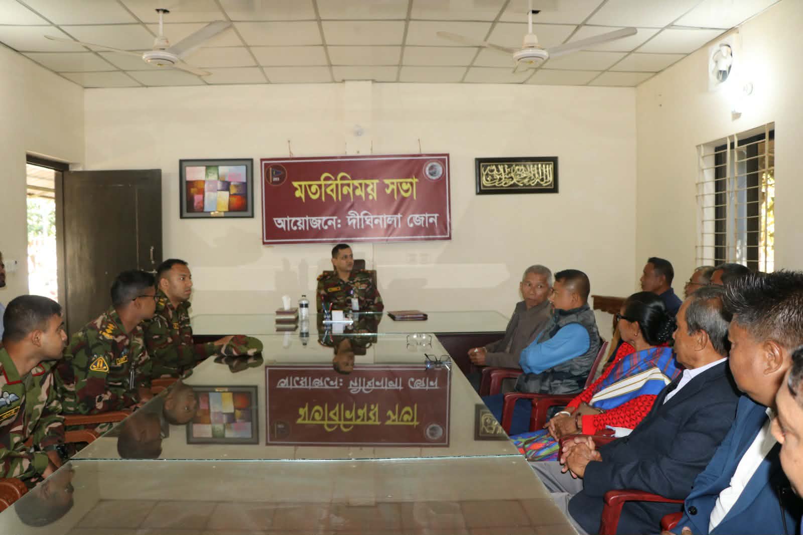 রবিবার (২১ ডিসেম্বর ২০২৫ ইং) সকাল ১১টা ঘটিকায় দীঘিনালা জোনে অনুষ্ঠিত এ মতবিনিময় সভায় প্রধান অতিথি হিসেবে উপস্থিত ছিলেন দীঘিনালা জোন কমান্ডার লে. কর্নেল মো. ওমর ফারূক, পিএসসি।