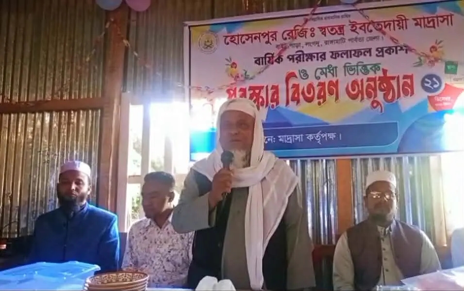 রাঙ্গামাটির লংগদু উপজেলা হোসেনপুর স্বতন্ত্র ইবতেদায়ী মাদ্রাসা শিক্ষার্থীদের বার্ষিক পরীক্ষা ফলাফল প্রকাশ ও পুরস্কার বিতরণী সভা অনুষ্ঠিত হয়েছে।