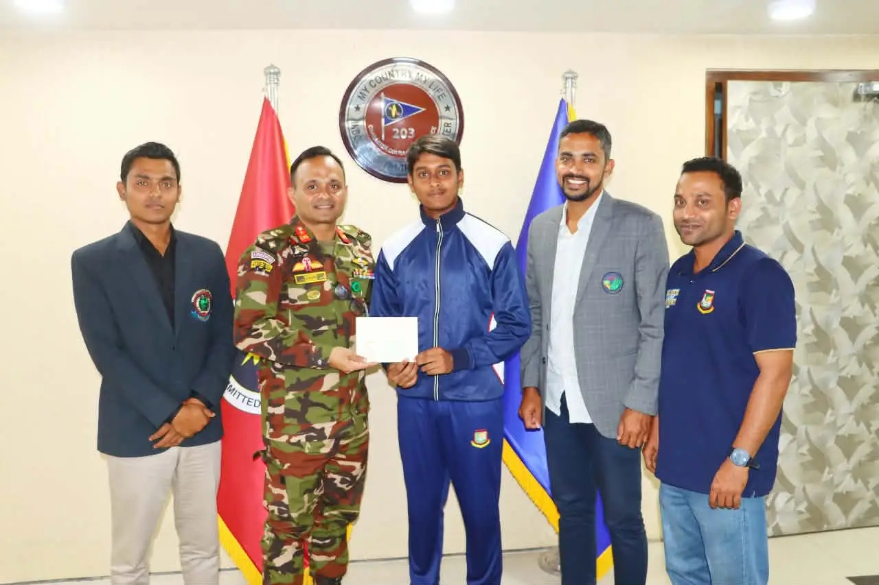 খাগড়াছড়িতে শান্তি ও সম্প্রীতি বজায় রাখার লক্ষ্যে খাগড়াছড়ি রিজিয়ন নিয়মিতভাবে নানাবিধ জনকল্যাণমূলক কর্মসূচি পরিচালনা করে আসছে প্রতিনিয়ত । এই ধারাবাহিক কার্যক্রমের অংশ হিসেবে ব্রিগেডিয়ার জেনারেল হাসান মাহমুদ, এইচডিএমসি, এএফডব্লিউসি, পিএসসি, কমান্ডার, ২০৩ পদাতিক ব্রিগেড ও রিজিয়ন কমান্ডার, খাগড়াছড়ি রিজিয়ন বাংলাদেশ অনূর্ধ্ব-১৭ জাতীয় ক্রিকেট দলের সদস্য মোঃ কাওসার কে আর্থিক সহায়তা প্রদান করেন।
