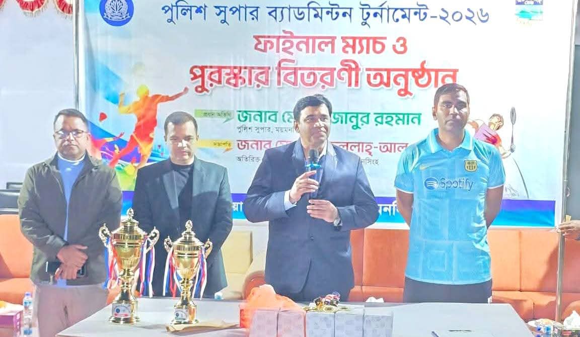 জেলা পুলিশ ময়মনসিংহের আয়োজনে পুলিশ সুপার ব্যাডমিন্টন টুর্নামেন্ট-২০২৬ এর ফাইনাল ম্যাচ ও পুরস্কার বিতরণী অনুষ্ঠান সফলভাবে অনুষ্ঠিত হয়েছে। ক্রীড়া ও সৌহার্দ্যপূর্ণ পরিবেশে অনুষ্ঠিত এ টুর্নামেন্টে জেলা পুলিশের বিভিন্ন ইউনিটের সদস্যদের স্বতঃস্ফূর্ত অংশগ্রহণ লক্ষ্য করা যায়।
