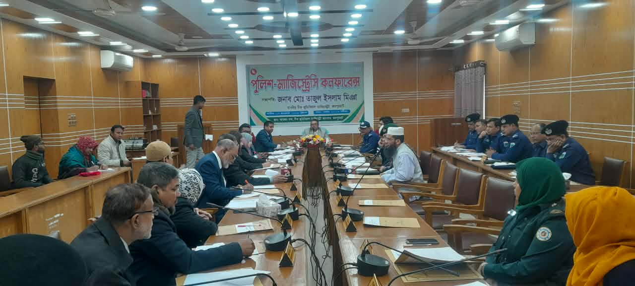 জয়পুরহাট জেলার বিজ্ঞ চীফ জুডিসিয়াল ম্যাজিস্ট্রেট জনাব মোঃ তাজুল ইসলাম মিঞার সভাপতিত্বে ১৭ জানুয়ারি (শনিবার) সকাল ১০ ঘটিকায় চীফ জুডিসিয়াল ম্যাজিস্ট্রেট আদালত জয়পুরহাট এর সম্মেলন কক্ষে পুলিশ ম্যাজিস্ট্রেসি কনফারেন্স অনুষ্ঠিত হয়। উক্ত কনফারেন্সে উপস্থিত হয়ে বক্তব্য প্রদান করেন বিজ্ঞ অতিরিক্ত চীফ জুডিসিয়াল ম্যাজিস্ট্রেট মিলন চন্দ্র পাল, অতিরিক্ত জেলা ম্যাজিস্ট্রেট মোহাইমেনা শারমিন,অতিরিক্ত পুলিশ সুপার আরিফ হোসেন, বিজ্ঞ জুডিসিয়াল ম্যাজিস্ট্রেট ক্যাথরিন গোমেজ, মোঃ নাসির উদ্দিন, মোসাঃ জান্নাতুল ফেরদৌস, বিজ্ঞ সিভিল জজ বেগম মেহনাজ হুমাইরা কুহেলী, জয়পুরহাট জেলা আইনজীবী সমিতির সভাপতি এ্যাডঃ আব্দুল মোমেন ফকির, সাধারণ সম্পাদক এ্যাডঃ মোঃ শহিদুল ইসলাম, বিজ্ঞ পিপি এ্যাডঃ মোঃশাহনুর রহমান শাহীন, বিজ্ঞ স্পেশাল পিপি রিনাত ফেরদৌসী রিনি, অতিরিক্ত পিপি এ্যাডঃ মামুনুর রশীদ, এটিএম মুজাহিদ আজিজ, রেপিড অ্যাকশন ব্যাটেলিয়ান ০৫ এর কমান্ডার, বিজিবি প্রতিনিধি জয়পুরহাট, জয়পুরহাট জেনারেল হসপিটাল এর তত্ত্বাবধায়ক ডাক্তার রাশেদ মোবারক, গণপূর্ত বিভাগের উপবিভাগীয় প্রকৌশলী জনাব আসাদ আলী খন্দকার, জেল সুপার উম্মে সালমা, প্রসিকিউটর মাদকদ্রব্য নিয়ন্ত্রণ অধিদপ্তর স্নিগ্ধা আক্তার, প্রবেশন অফিসার শারমিন সুলতানা, কোর্ট ইন্সপেক্টর, ওসি ডিবি ও জয়পুরহাট জেলার সকল থানার অফিসার ইনচার্জবৃন্দ। কনফারেন্সে জয়পুরহাট জেলার সার্বিক বিচারিক বিষয়ে বিস্তারিত আলোচনা করা হয়, বিভিন্ন সমস্যা নির্ধারণ ও উক্ত সমস্যাসমুহ সমাধানের উপায় নিয়ে বিস্তারিত আলোচনা হয়। সঠিক সময়ে মেডিক্যাল সার্টিফিকেট প্রদান ও তদন্ত প্রতিবেদন প্রদানের বিষয়ে গুরুত্ব প্রদান করা হয় , মামলা দ্রুত নিষ্পত্তির জন্য সাক্ষীর প্রতি সমন প্রদান এবং তা যথাযথভাবে জারির কথা বলা হয়। সর্বশেষে চীফ জুডিসিয়াল ম্যাজিস্ট্রেট তাজুল ইসলাম মিঞা বলেন যে একটি সুন্দর সমাজ বিনির্মাণে আমাদেরকে সম্মিলিতভাবে কাজ করে যেতে হবে তিনি সকলকে ধন্যবাদ প্রদান করে কনফারেন্সের সমাপ্তি ঘোষণা করেন।