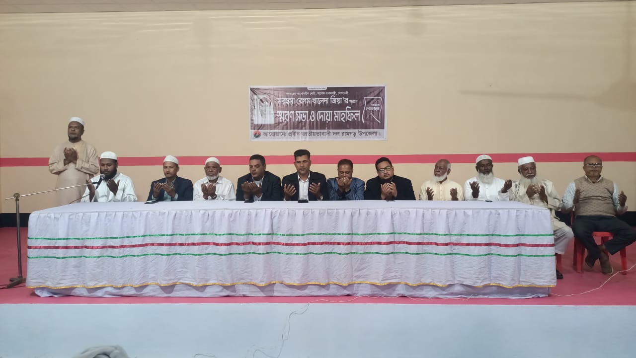 বাংলাদেশ জাতীয়তাবাদী দল (বিএনপি'র) চেয়ারপারসন ও সাবেক প্রধানমন্ত্রী মরহুমা বেগম খালেদা জিয়াকে স্মরণে খাগড়াছড়ির রামগড় প্রবীণ বিএনপি উপদেষ্টা কমিটির আয়োজনে দোয়া মাহফিল ও তবারক বিতরন করা হয়েছে।