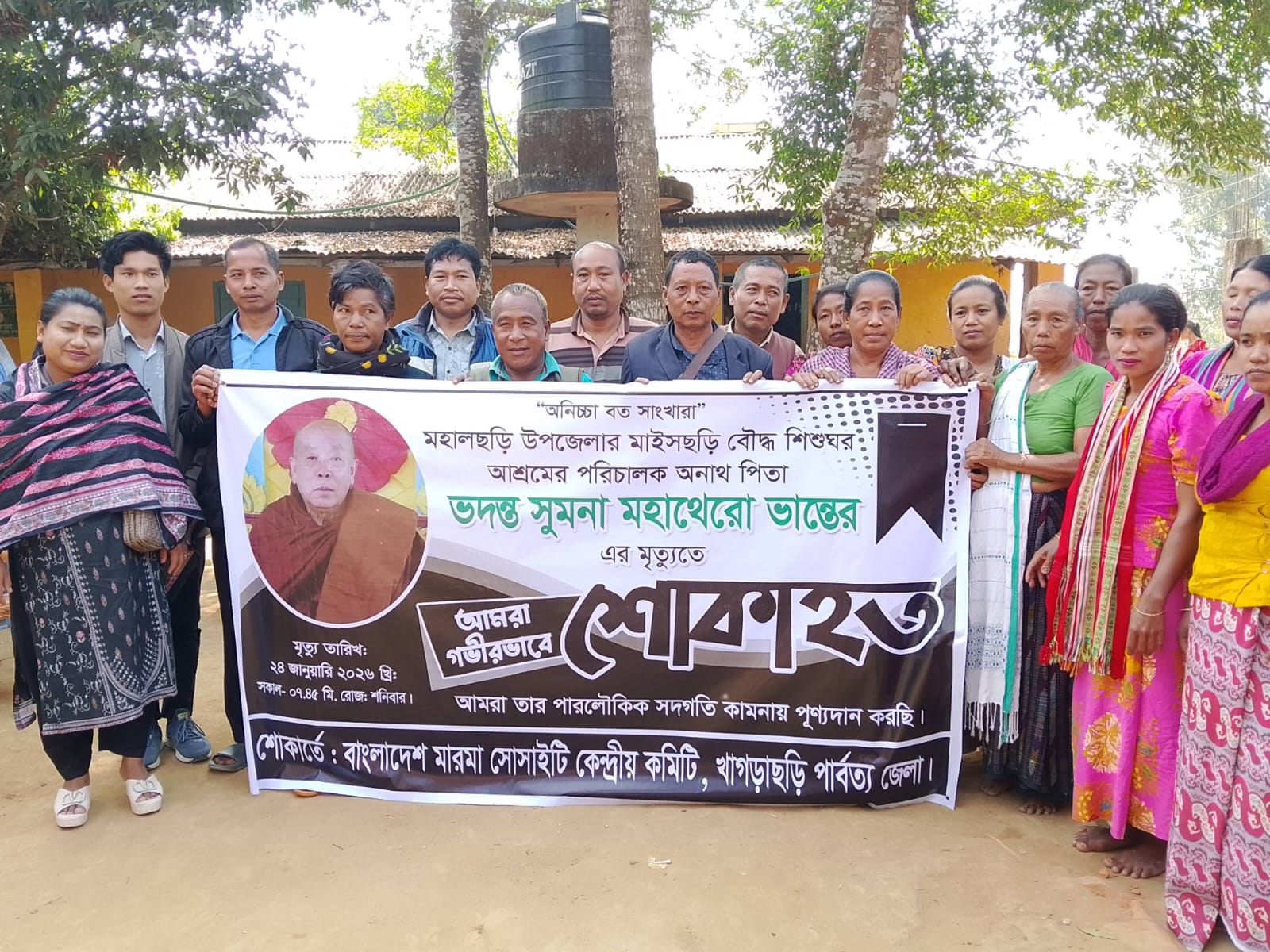 খাগড়াছড়ি জেলা মহালছড়ি উপজেলার সদস্থরে মাইসছড়ি বৌদ্ধ শিশু ঘর অনাথ আশ্রম পরিচালক অনাথ পিতা তদন্ত সুমনা মহাথেরো কে বাংলাদেশ মারমা সোসাইটি কেন্দ্রীয় কমিটির পক্ষে শোক শ্রদ্ধা জানান।