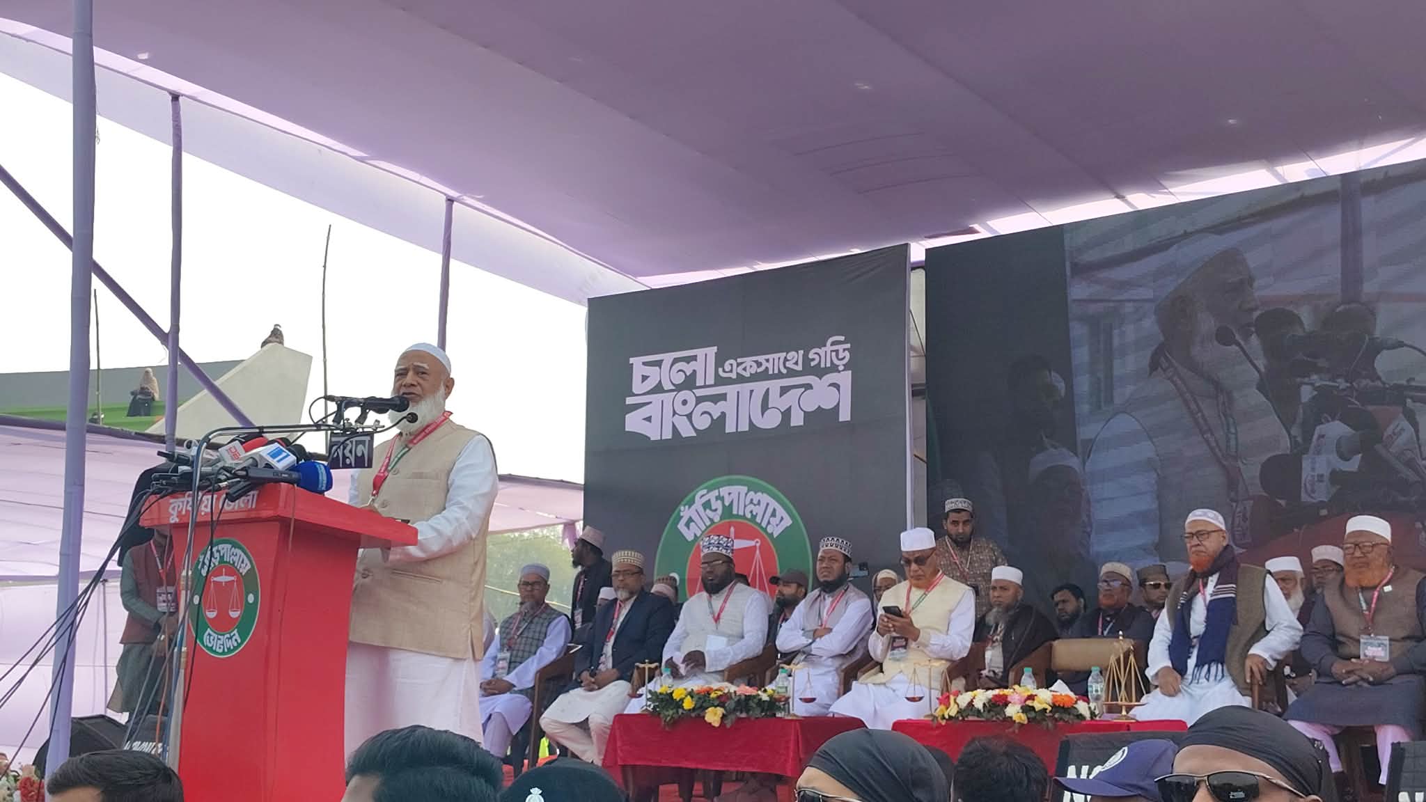 বাংলাদেশ জামায়াতে ইসলামীর কেন্দ্রীয় আমীর ডা. শফিকুর রহমান বলেছেন, সকলের সহযোগিতায় আমরা বাংলাদেশকে এগিয়ে নিয়ে যেতে চায়। যাতে আপনারা গর্বের সাথে বলতে পারেন আমি বাংলাদেশী। আমরা দেশে বেকার রাখতে চায় না। প্রত্যেকের কর্মের মাধ্যমে বেকারত্ব দূর করতে চায়। শিক্ষা ব্যবস্থা পরিবর্তনের মাধ্যমে মেধা সম্পন্ন জাতি গড়তে চায়। আমাদের শিক্ষা হবে কর্মমুখী ও মানবিক। সেই আলোকেই আমরা দেশ গড়তে। কুষ্টিয়ায় ১১ দলের নির্বাচনী জনসভায় হাজার হাজার জনতার জনসমুদ্রে প্রধান অতিথির বক্তব্যে তিনি একথা বলেন। দেশের বিভিন্ন জেলায় নির্বাচনী কাজে বের হওয়া নারীদের উপর হামলার ঘটনা ঘটেছে। এই ইস্যুতে বাংলাদেশ জামায়াতে ইসলামীর আমীর ডা. শফিকুর রহমান বলেছেন, দ্বীনের দাওয়াত নিয়ে অনেক মায়েরা ঘরে ঘরে যান। একটা শ্রেণি তাদের অপমান করেন। কখনো গায়েও হাত দেন। যারা এগুলো করেন, তারাওতো কোনো মায়ের পেটেই জন্মেছেন। তাহলে কেনো এমন করেন, প্রশ্ন রাখেন জামায়াত আমীর। সোমবার সকালে কুষ্টিয়া আবরার ফাহাদ স্টেডিয়ামে এ জনসভা অনুষ্ঠিত হয়। জামায়াতের কুষ্টিয়া জেলার ভারপ্রাপ্ত আমীর কুষ্টিয়া-২ (মিরপুর-ভেড়ামারা) আসনের প্রার্থী আব্দুল গফুরের সভাপতিত্বে বক্তব্য রাখেন জামায়াতের কেন্দ্রীয় নির্বাহী পরিষদ সদস্য যশোর কুষ্টিয়া অঞ্চলের পরিচালক মোবারক হোসাইন,