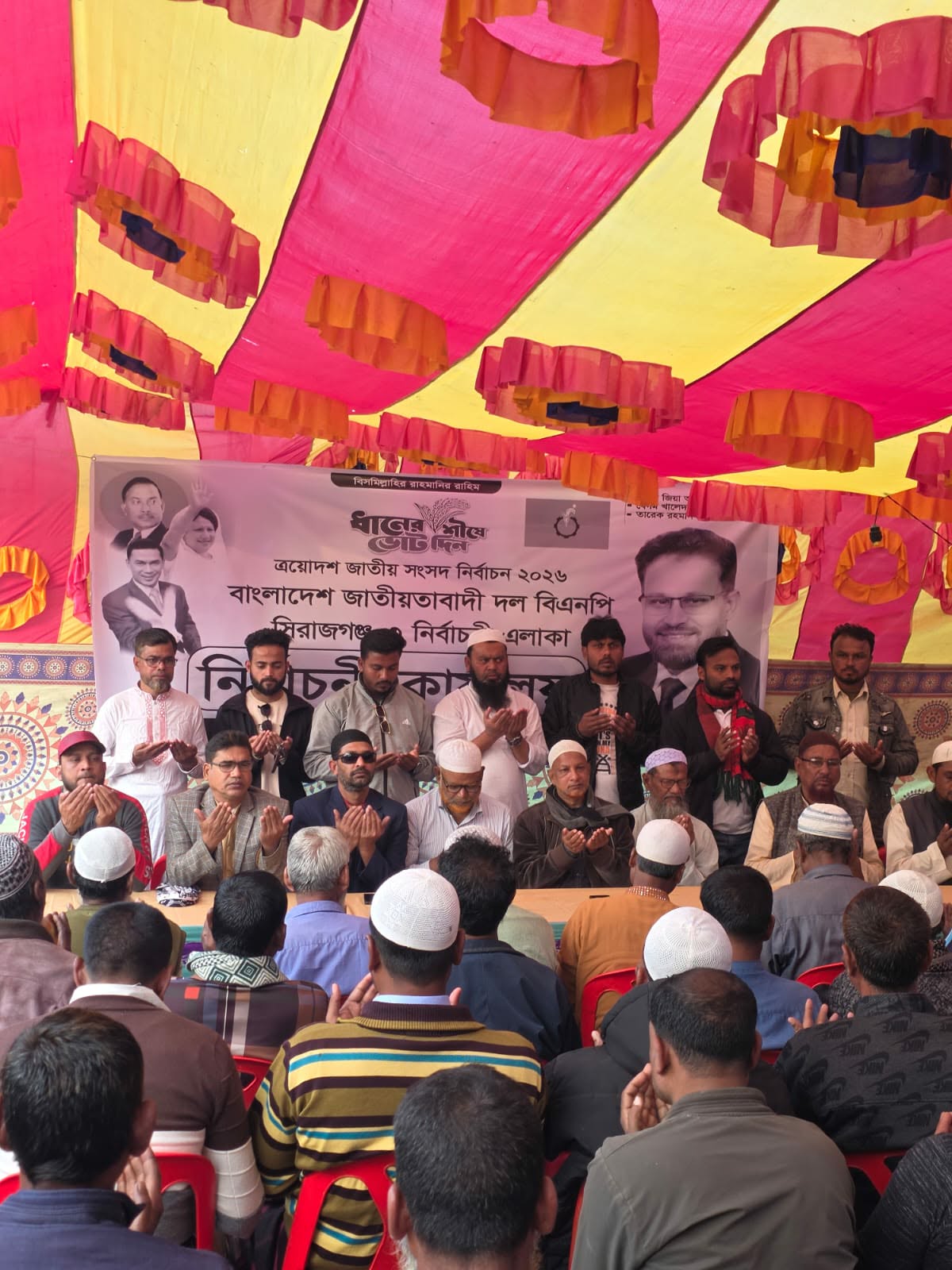 সিরাজগঞ্জের তাড়াশে সাবেক প্রধানমন্ত্রী বেগম খালেদা জিয়ার রুহের মাগফেরাত কামনা করে দোয়া ও সিরাজগঞ্জ ৩ আসনের বিএনপি মনোনীত প্রার্থী ভিপি আয়নুল হকের সুস্থতা কামনা করে দোয়া অনুষ্ঠান এবং কম্বল বিতরণ করা হয়েছে। মঙ্গলবার সন্ধ্যায় বারুহাস ইউনিয়ন যুবদলের আহ্বায়ক আল-আমিন শেখ বারুহাস বাজারে ওই অনুষ্ঠানের আয়োজন করেন। উক্ত অনুষ্ঠানে উপস্থিত ছিলেন তাড়াশ উপজেলা যুবদলের সদস্য সচিব রাজিব আহম্মেদ মাসুম, বিএনপি নেতা আব্দুল হাকিম, সাবেক ইউপি চেয়ারম্যান হাসান ইকবাল শহিদ, যুবদলের যুগ্ম আহ্বায়ক মিলন খানসহ বিএনপি ও যুবদলের অন্যান্য নেতৃবৃন্দ। এসময় মরহুমা বেগম খালেদা জিয়ার রুহের মাগফেরাত কামনা করে এক বিশেষ দোয়া ও ভিপি আয়নুল হকের সুস্থতা কামনা করে দোয়া করা হয়। পরে শীতার্ত হতদরিদ্রদের মাঝে কম্বল বিতরণ করা হয়।